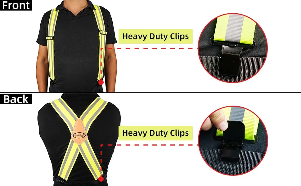 ✅Качественный материал: высококачественный светоотражающий ремешок, прочный никелированный прочный зажим на подтяжках плотно удерживает штаны и предотвращает скольжение брюк, а также сверхпрочная кожаная нашивка.