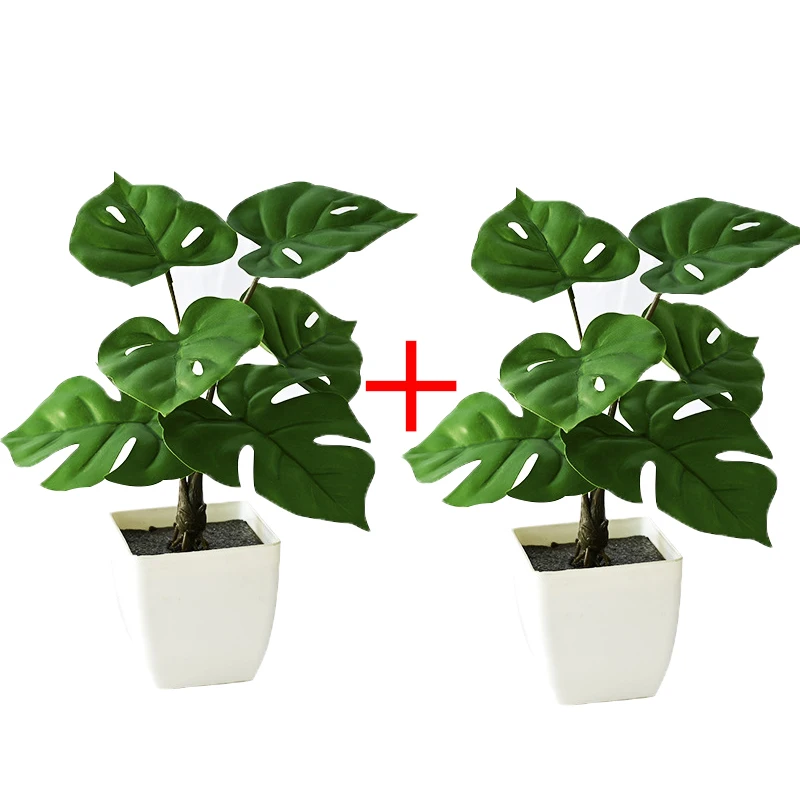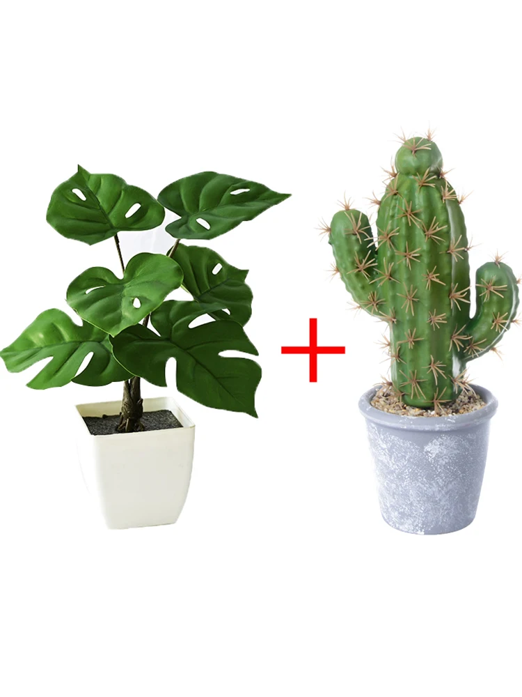 2pcs/Lot Desktop Plants Artificial Monstera Bonsai Fake Tree In Pot Foam Cactus Desert Thorn Ball For Home Garden Bathroom Decor