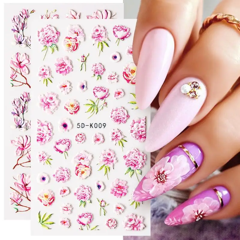 5D наклейки для ногтей цветы французские кружевные гелевые наклейки акриловые Выгравированные слайдеры тисненые фольги ультра-тонкие маникюрные украшения для ногтей