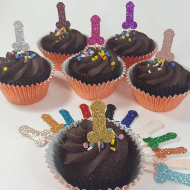 12 шт Блеск Willy пенис торт Кекс Топпер Свадьба пользу девичник холостяцкая Вечеринка сбор взрослых секс девушка ночная Вечеринка принадлежности