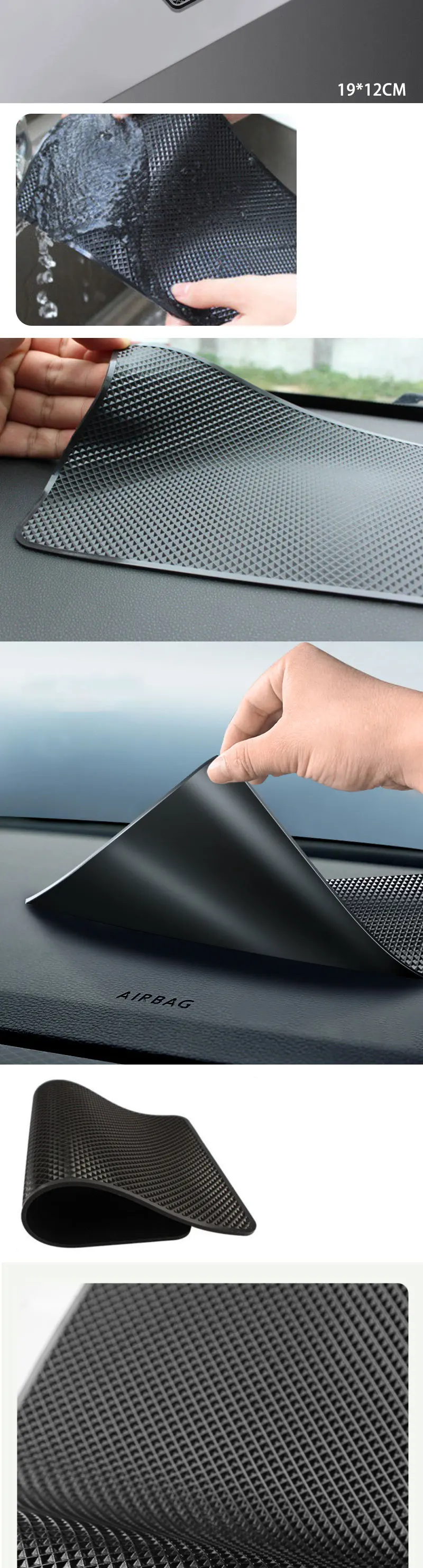 [Простой в использовании] Просто наденьте на приборную панель автомобиля, подлокотник или другую плоскую поверхность, не нужна адхенсивная лента или клей, теперь вы можете начать использовать. Наш нескользящий коврик можно стирать и использовать повторно, вы можете просто использовать чистую воду для мытья или протирания, удобно держать поверхность в чистоте и обновлять коврик.