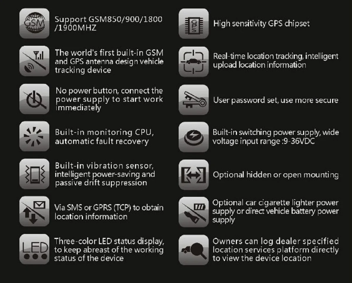 1. Трекер является сетевым устройством GSM 2G, пожалуйста, используйте sim-карту, которая поддерживает сеть GSM 2G.