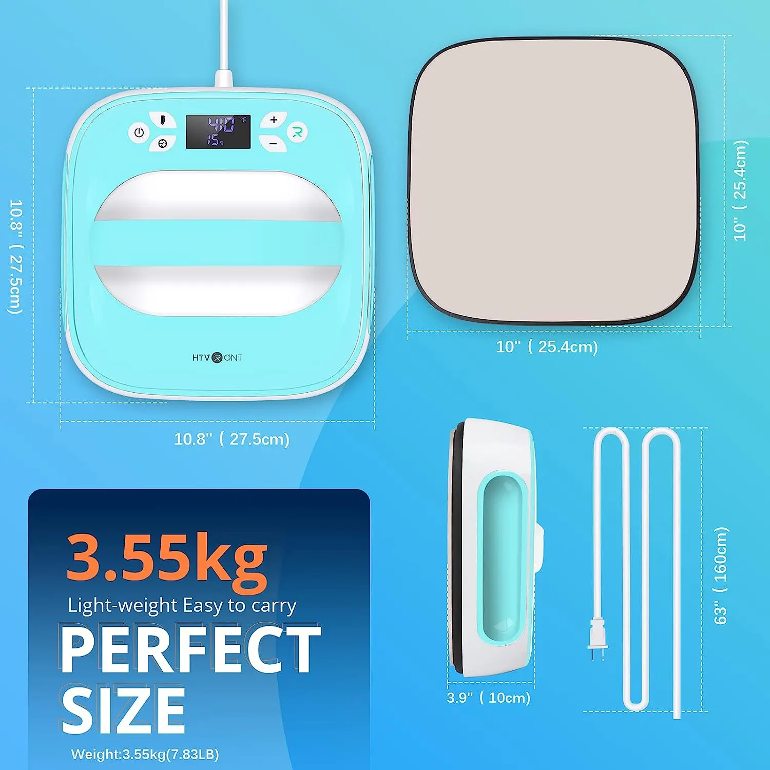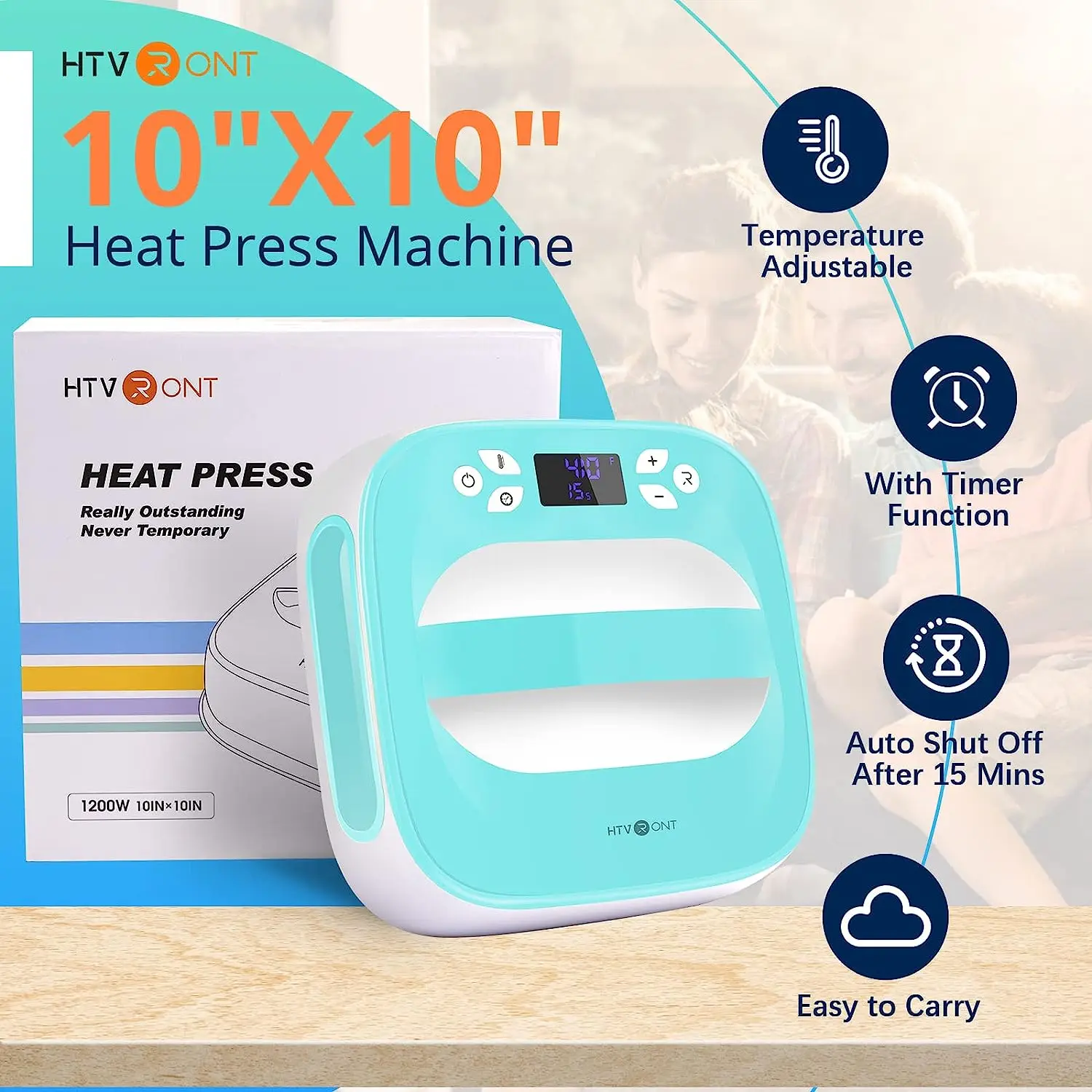 Features:10 inches x 10 inches (25.4cm x 25.4cm) size ideal for basic t shirts, tote bags, pillows, aprons, and more[ENDLESS PROJECT POSSIBILITIES] HTVRONT Heat Press makes it easy to take on any heat-transfer vinyl or sublimation project that comes your way. Whichever project you choose, you can be confident in its precise temperature control[TRAVEL WITH EASE] The insulated Safety Base and auto-shutoff features provide peace of mind while the lightweight, portable, easy to store design makes it the ideal travel heat press.[EVERYDAY IRON ON ESSENTIAL] Combining the speed of a heat press and the convenience of an iron, HTVRONT Heat Press gives you fast, effortless results that last. Eliminate guesswork with rigorously tested time and temperature settings for every project.[PROFESSIONAL RESULTS] HTVRONT Heat Press brings professional grade to your home. With the advanced heat plate design with ceramic-coated surface, precise temperature controls up to 400℉ (205°C), and a built-in timer.[HOW IT WORKS] The HTVRONT Heat Press makes heat transfer projects on many blanks a breeze. It's as easy as setting the time and temp with our online heat guide, place the evenly heated heat press plate on the project, and then enjoy long lasting results.[PERFECT COMPANION] HTVRONT Heat Press is compatible with most major brands of heat-transfer vinyl and all Cricut Infusible Ink products. This makes the Heat Press the perfect companion to Cricut Explore, Cricut Maker, and Cricut Joy.Packaging List:1x Heat Press Machine1x Insulated Base1x Storage Bag1x User Manual