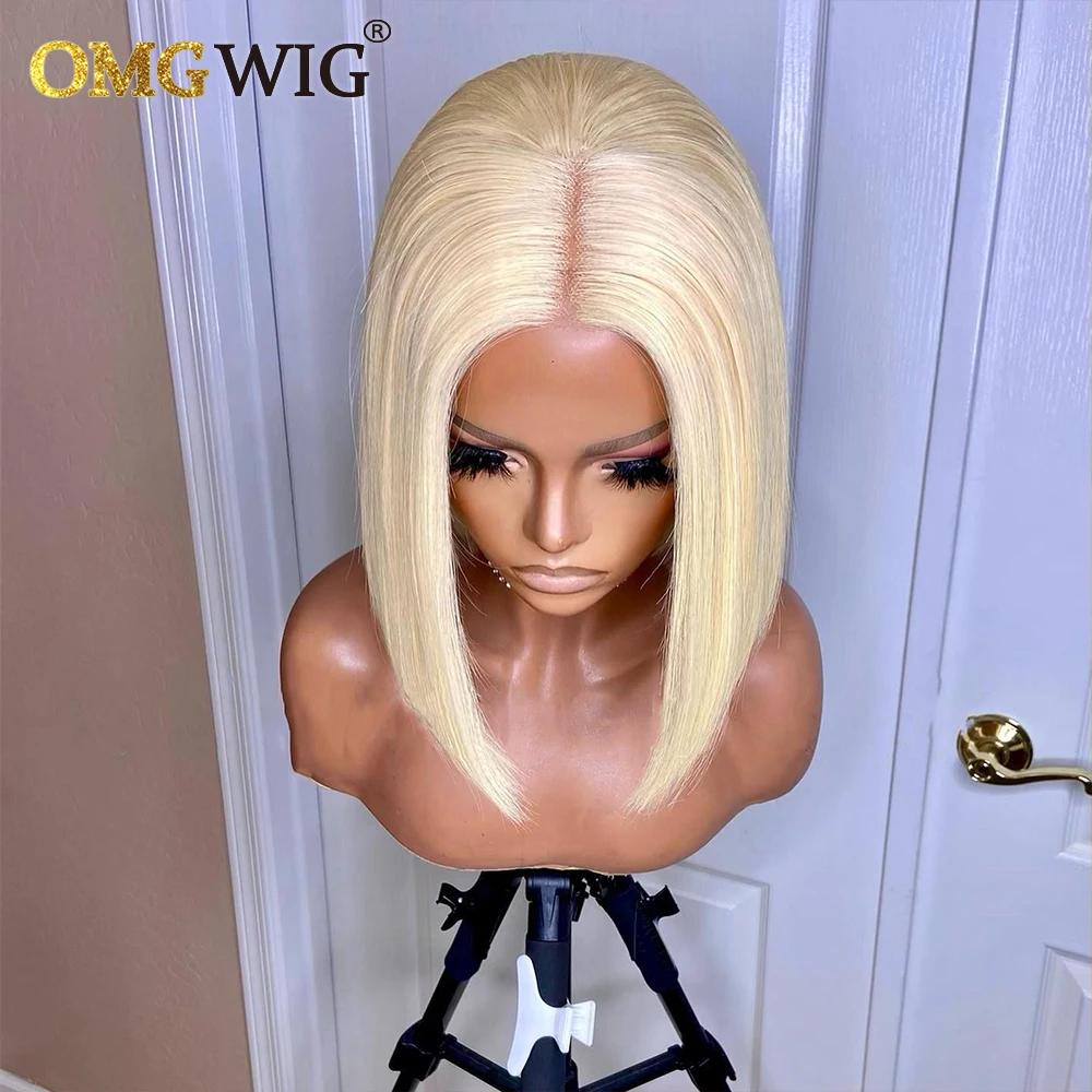 Эффектом деграде (переход от темного к два тона 613 блондинка оранжевый Цветной короткую стрижку Боб парики для женщин прямые бразильские человеческие волосы 13x4 кружева застежка спереди парик
