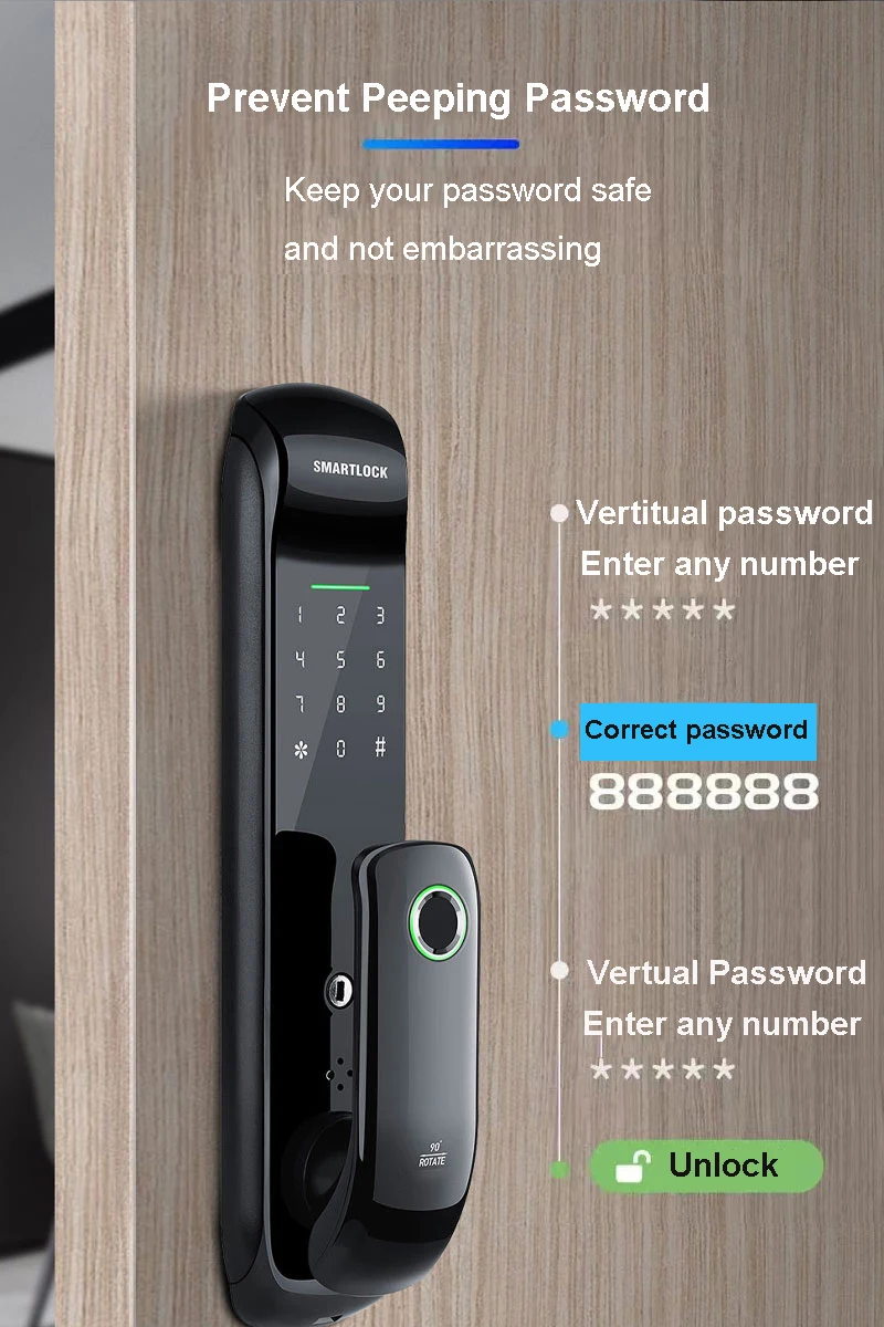 1. 6 способов разблокировки: Tuya smart App/приложение Smartlife, отпечаток пальца, пароль, IC карта, NFC карта, механический ключ