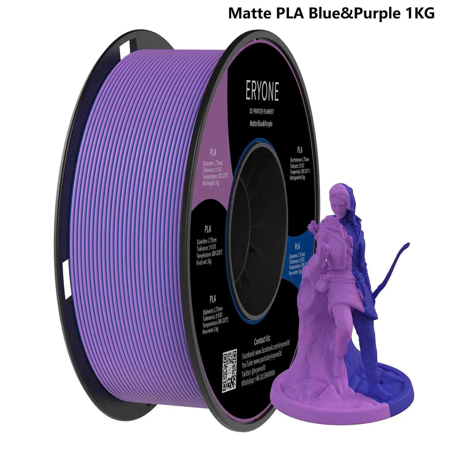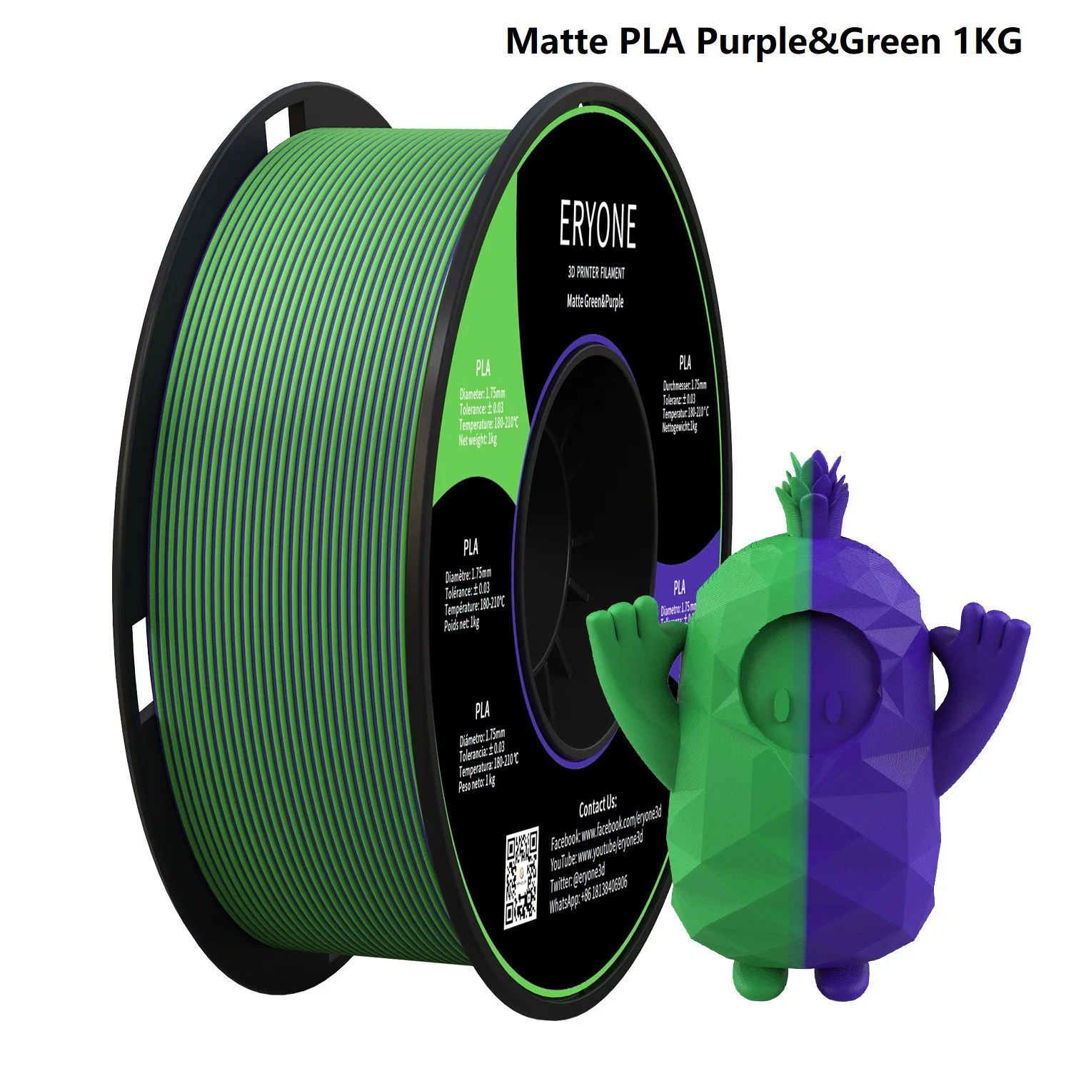 ERYONE Promotion New Dual Color Filament Matte Silk PLA For 3D FDM Printer Fast Free Shipping Color Changing 1.75mm ±0.03