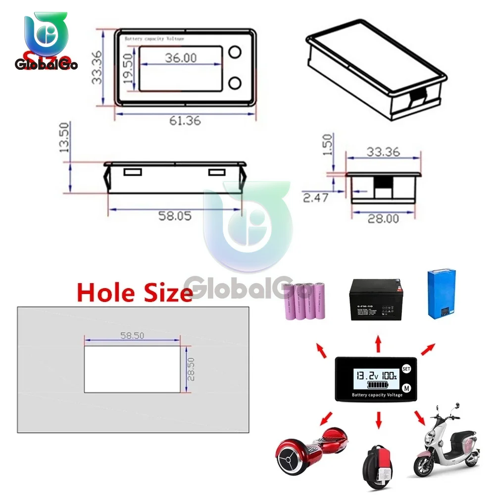 6133A цифровой амперметр вольтметр ЖК-Напряжение Электрический 8-100 в цифровой дисплей Электрический измеритель количества индикатор емкости батареи