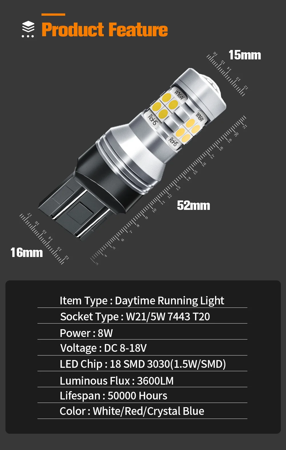 2. Тип разъема: W21/5W,7443,T20