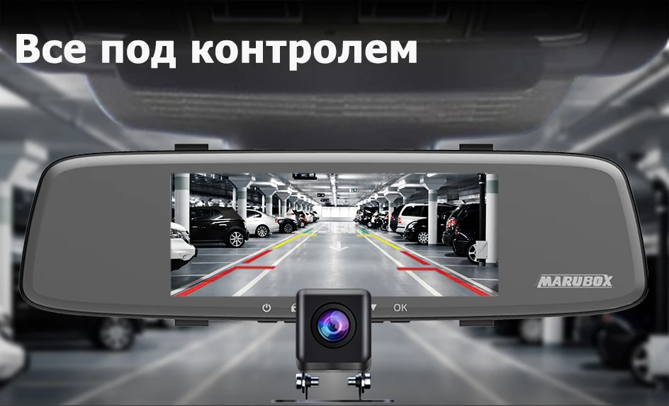 Дополнительная камера Marubox M680R записывает все нюансы дорожной обстановки позади автомобиля в FHD разрешении, а при включении задней передачи на экран зеркала выводится изображение для комфортной парковки.