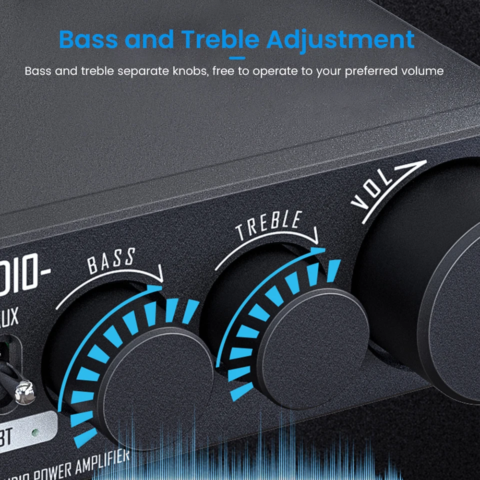 [Привод пассивных динамиков] Если вы предпочитаете отдельные пассивные динамики и преампы для вашей настройки звука, Управляйте большинством домашних пассивных динамиков для создания удивительного звука. Легко подходит для вашей аудиосистемы с входом BT и RCA.