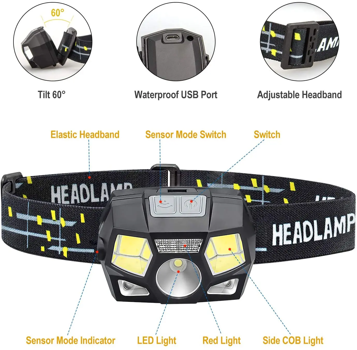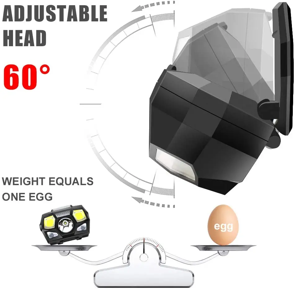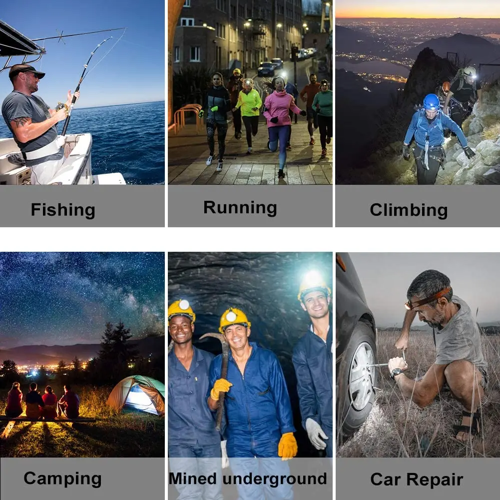 The portable outdoor indnctive light is all-perspectively designed, the USB port charging adds a stronger power on it. The main light is LED. Special double-switch design to ensure you a convert modes convert. Hight-capacity rechargeable battery offers a long lasting powering for safer outdoor sports. The headlamp is mainly used for fishing, hunting, night running, hiking and camping.