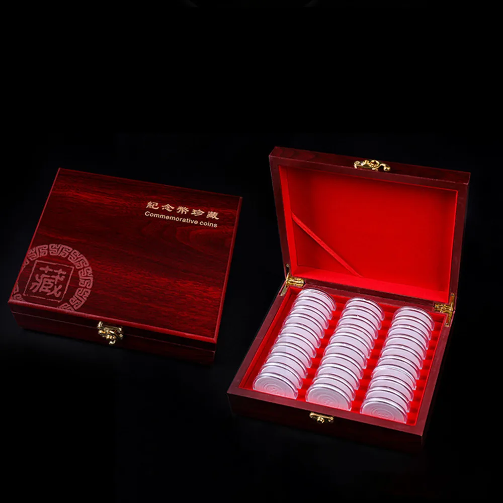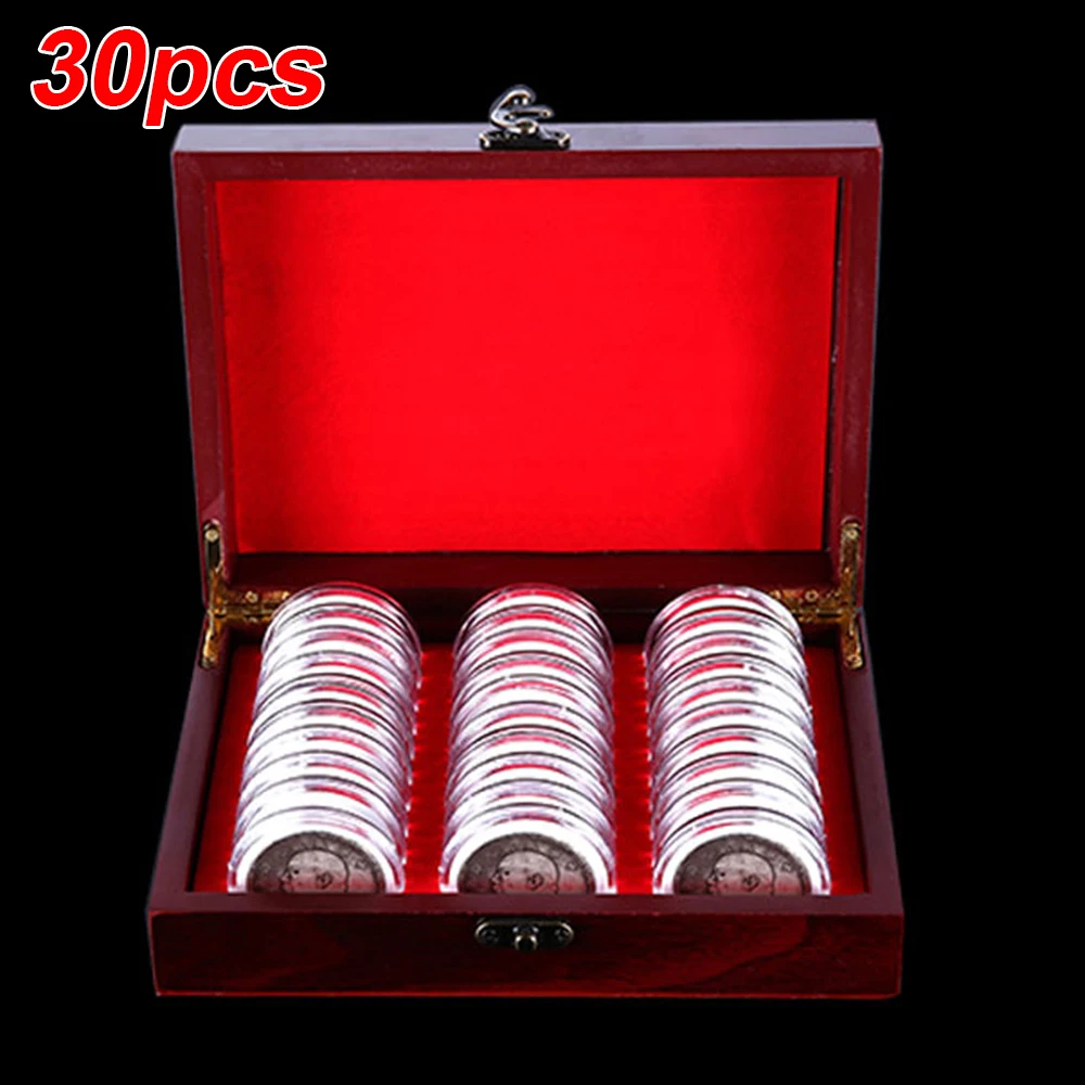 * 30 шт круглые держатели монет ящики для хранения + деревянный контейнер коробка для сбора
