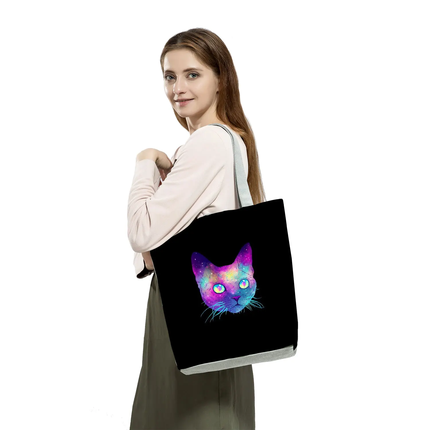 Индивидуальная модная сумка с принтом молнии кота, Милая женская дешевая сумка-тоут с животными, вместительная Портативная сумка через плечо, сумка для покупок