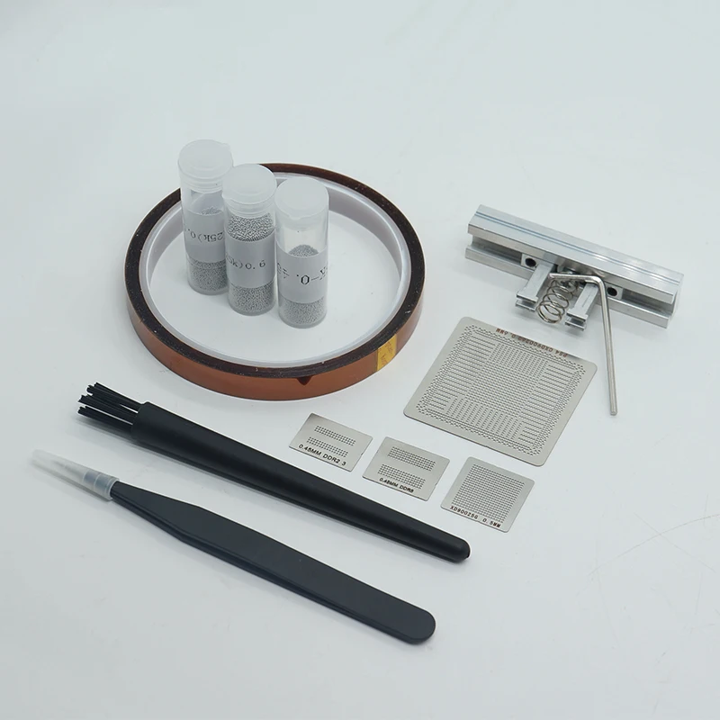 Этот набор включает в себя посадочную платформу, стальную сетку, Оловянные шарики, шестигранный ключ, щетку, скребок и так далее.