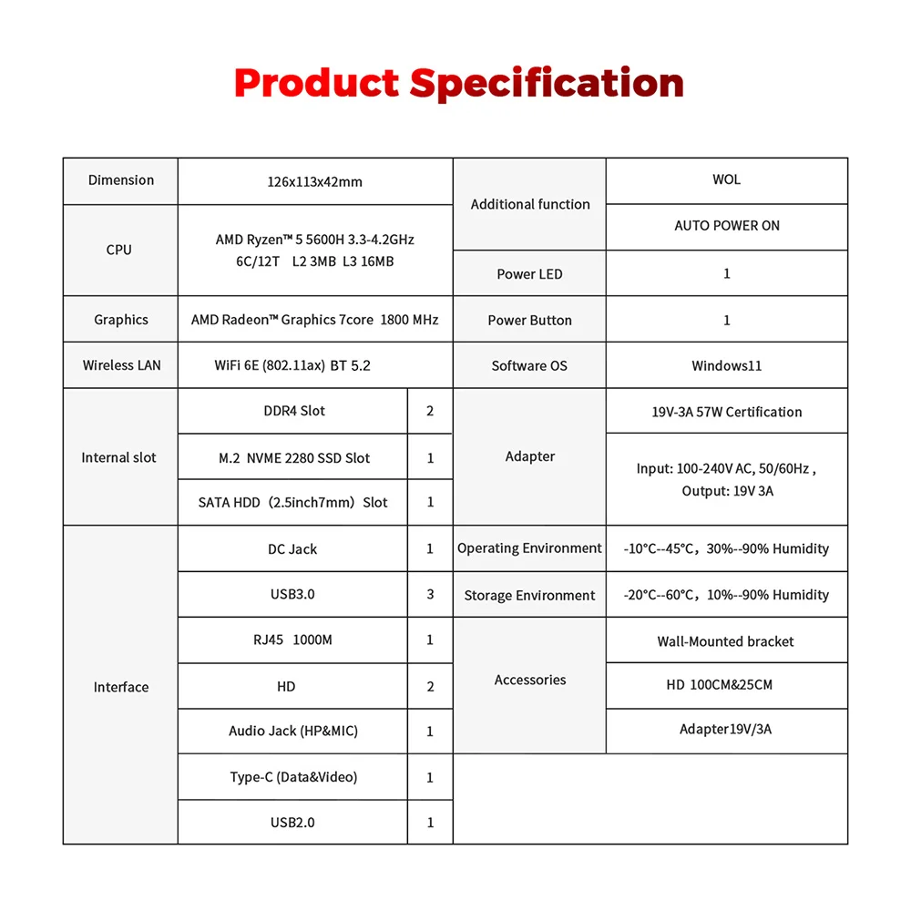 -Поддержка: 1 * RJ45 1000 Мбит/с, WiFi 6E, BT5.2