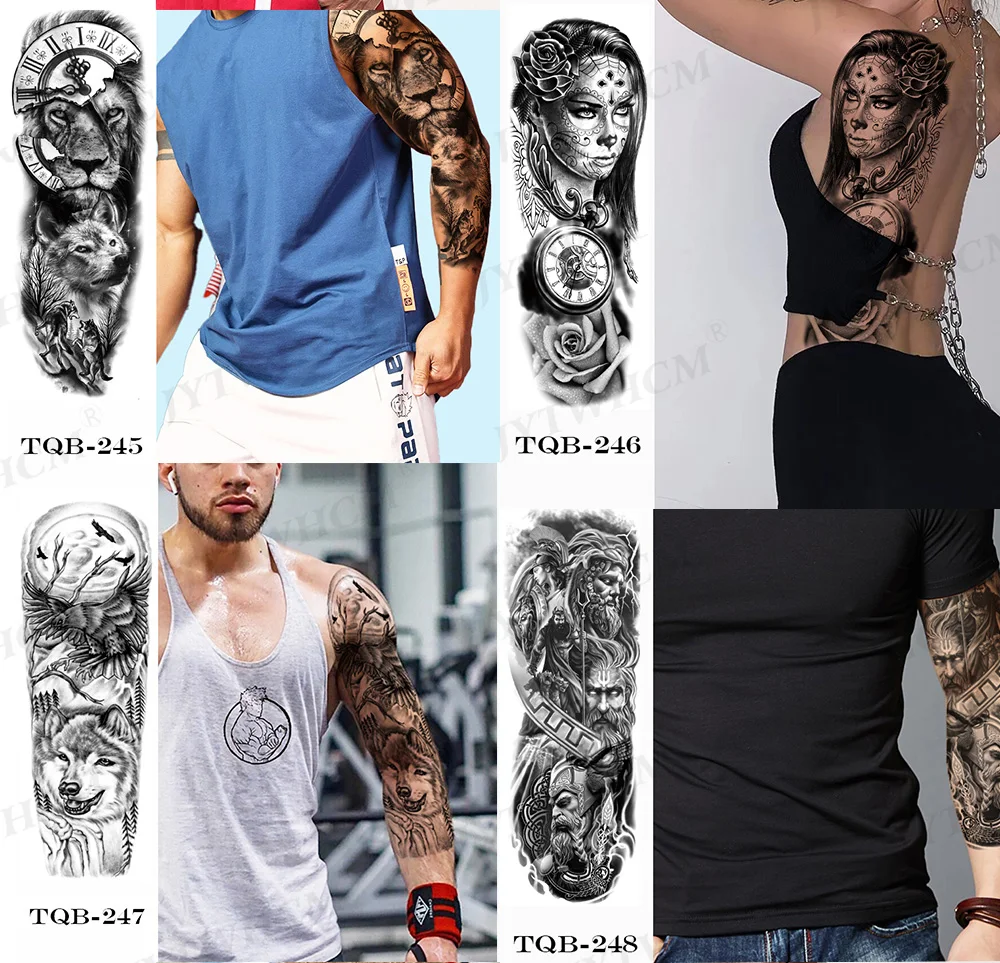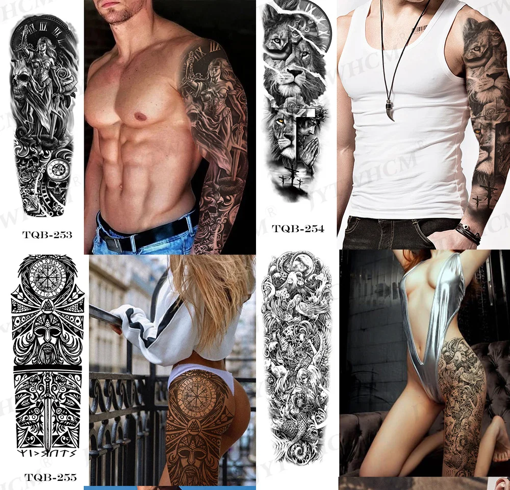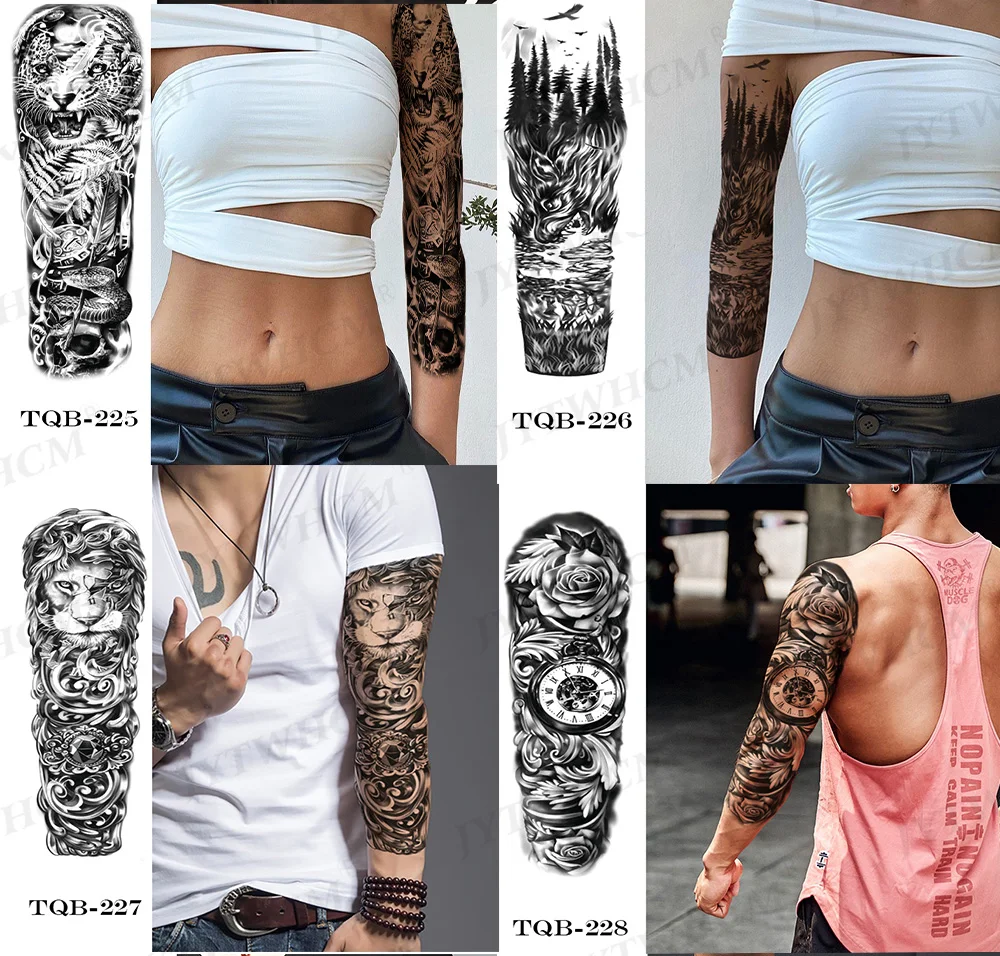 Style: full-arm fake tattoo, large tattoo, thigh arm tattoo, fake sleeves