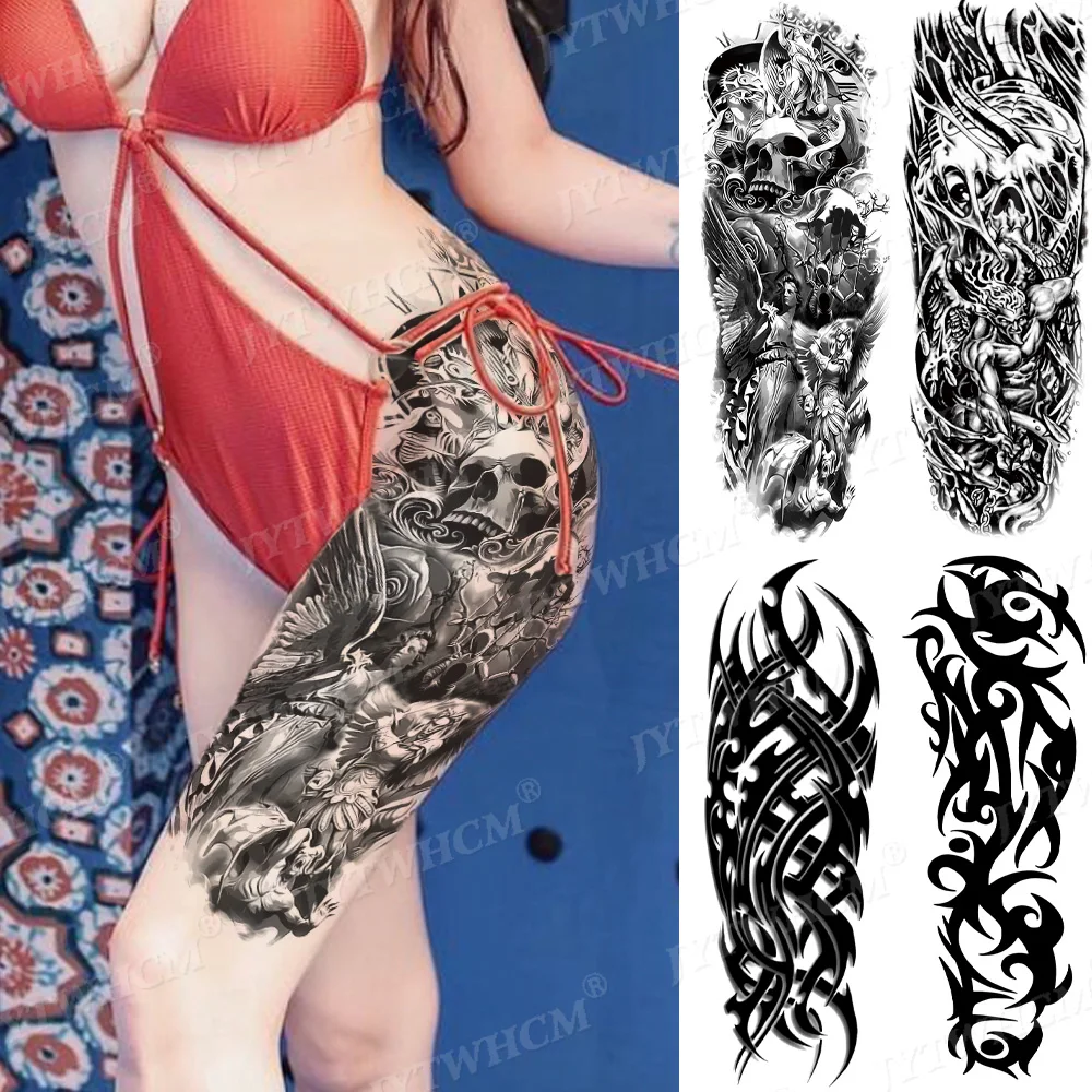 Skull Ripple Arm Sleeve Tattoo Beauty Waterproof Temporary Tatto Sticker Lotus Large Full Arm Body Art Fake Tattoo For Women Thigh