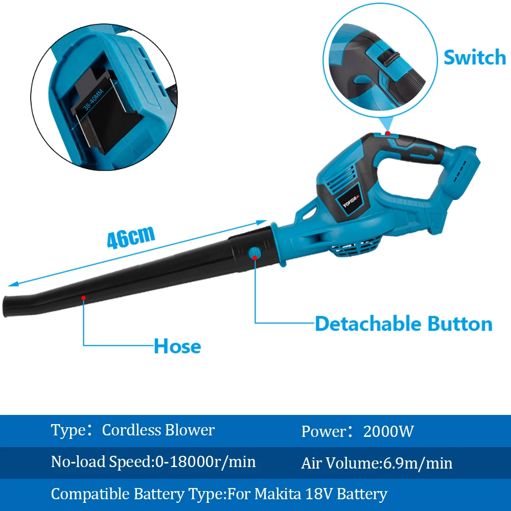 18 в Мощность Фул Электрическая воздуходувка для Makita 18V Батарея портативный беспроводной сдуватель листьев машина для очистки снега для удаления пыли сад Мощность инструмент