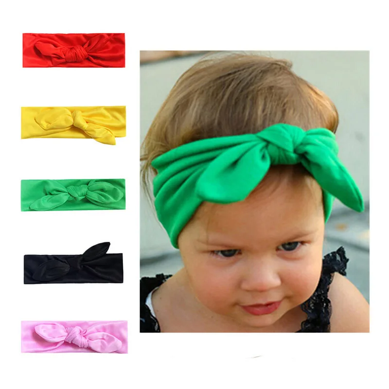 2022 Лучшая распродажа, Детская повязка на голову с кроличьими ушками для маленьких девочек, повязка на голову с бантиком, вязаный головной убор, аксессуары для волос для малышей