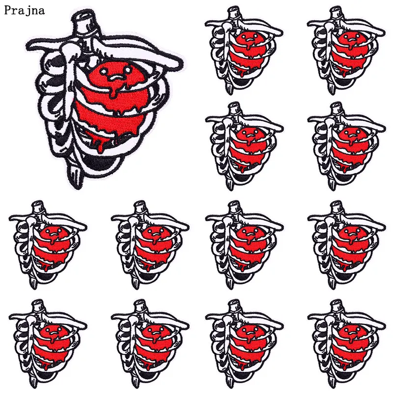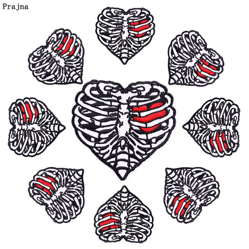 Pulaqi оптовая продажа 10 шт панковские нашивки с вышивкой в виде сердца для одежды термоклейкие нашивки на одежду с аппликацией в виде скелета в полоску