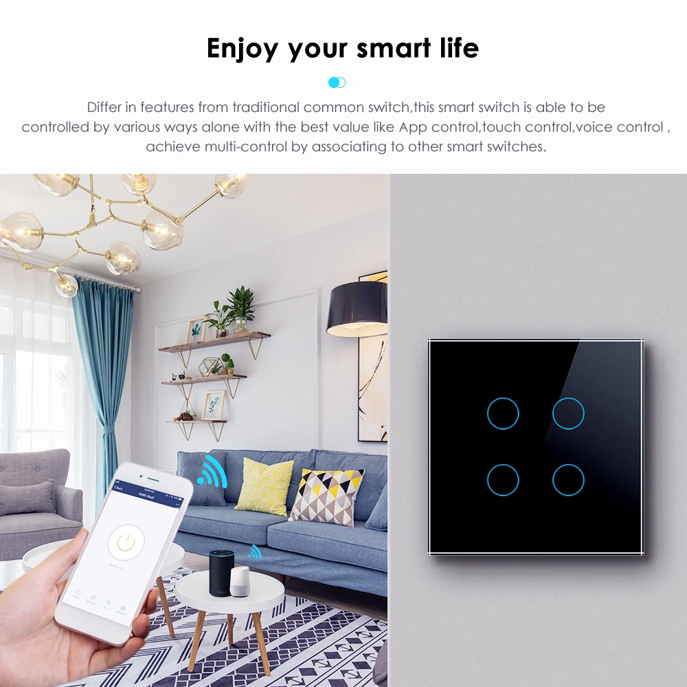 1. Отличается особенностями от традиционного общего переключателя, этот смарт-переключатель может управляться различными способами в отдельности с лучшим значением, таким как управление приложением, сенсорное управление, голосовое управление, добиться мульти-контроля