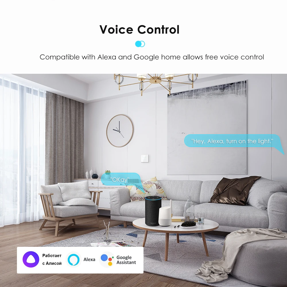 2. Совместимость с Alexa и Google home позволяет свободно управлять голосом; Удаленное управление устройствами на вашем смартфоне через приложение smart Life/Tuya, где бы вы ни находились.