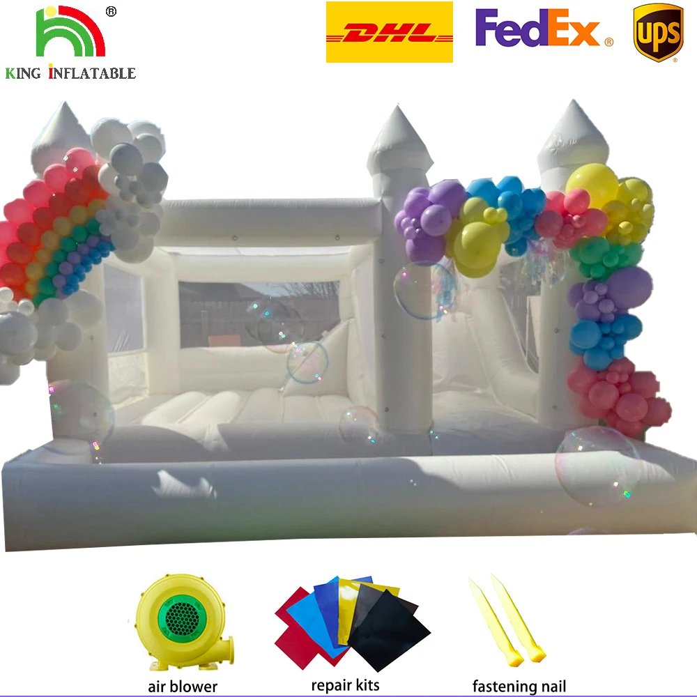 Белый свадебный надувной дом, 3 в 1, комбо, детский джемпер, надувной замок, надувной батут с мячом, вечерние, в аренду