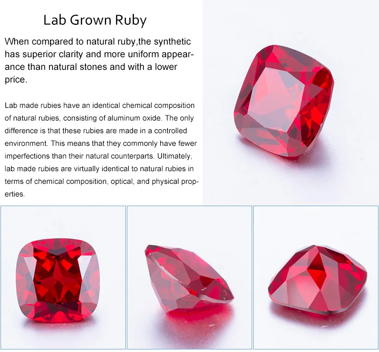 Created Ruby Blood Red Ruby Stone Cushion Price per Carat Use for the Gold Ring Lab Created Diamond Vivid Red