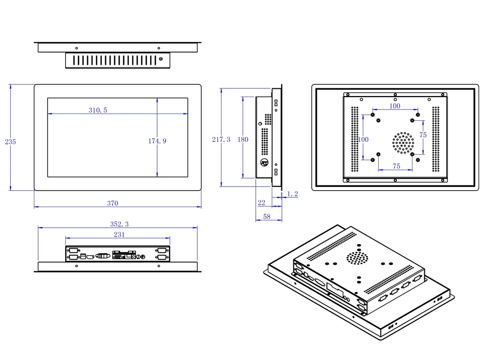 Интерфейс: 1 VGA + 1 HDMI + 2 COM (стандартный интерфейс 232 протокола) + 1 RJ45 + 4 USB + 1 аудио + 1 DC 12V In (1x3 Pin источник питания авиационный порт, 2 x RJ45, 6 x COM опционально)