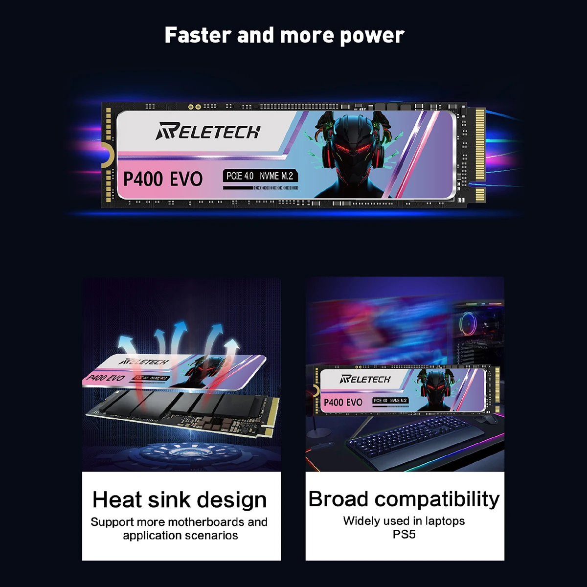 Reletech SSD 1 ТБ 2 ТБ SSD M2 NVMe PCIe 4,0x4 M.2 2280 NVMe SSD-накопитель Внутренний твердотельный жесткий диск для настольных ПК PS5 Playstation 5