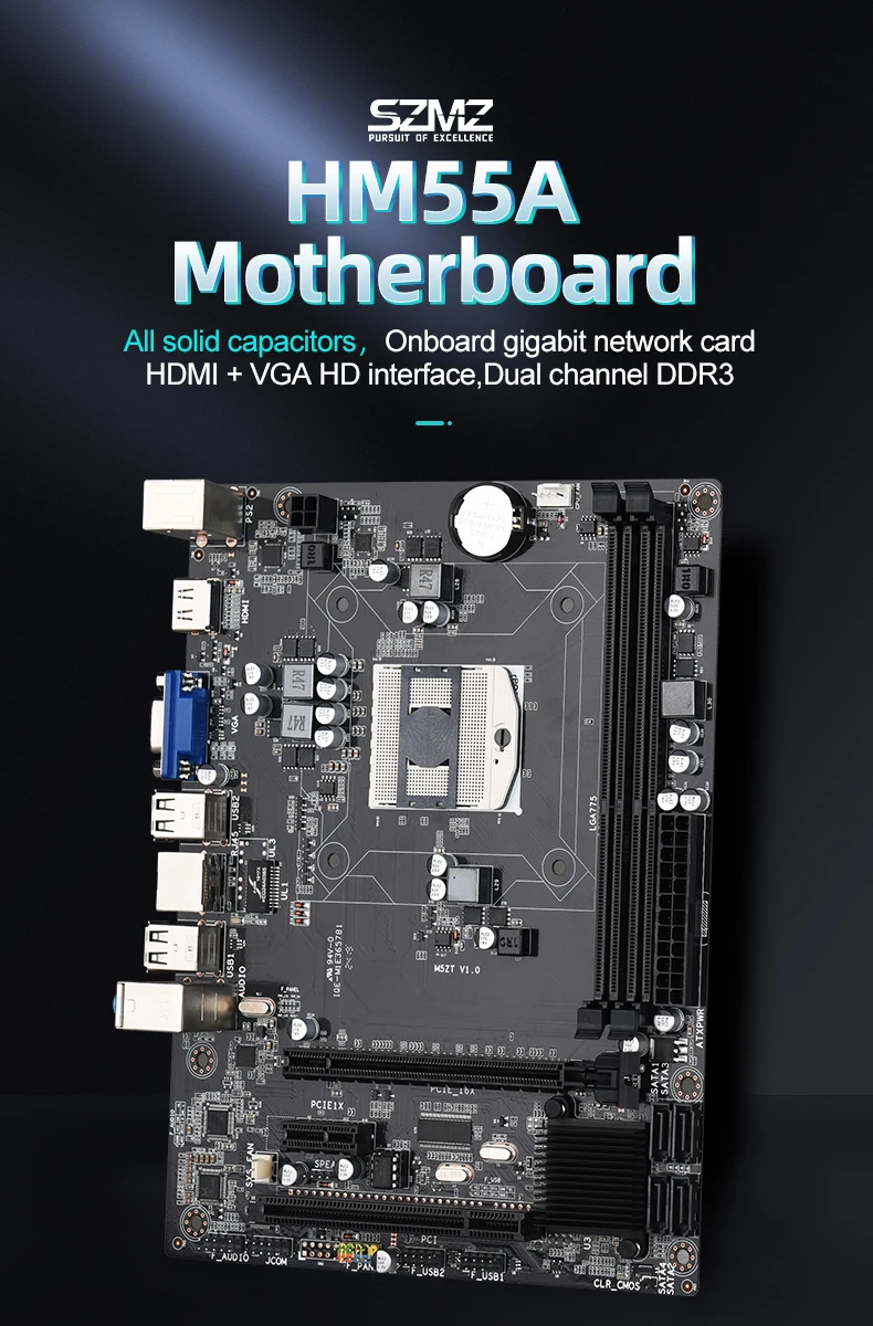 SZMZ HM55A материнская плата 989 PGA набор с процессором Pentium I7 640M 8 Гб (2*4 Гб) DDR3 PC RAM памяти CPU вентилятор USB 2,0 HDMI