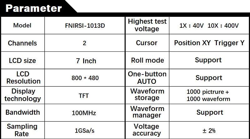 FNIRSI 1013D-полнофункциональный, практичный, экономичный двухканальный плоский осциллограф для технического обслуживания и НИОКР.
