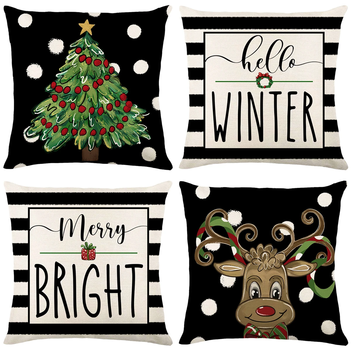 LuanQI, наволочка с надписью, Рождественская елка, льняная наволочка, 2022, Счастливого Рождества, Декор для дома, Счастливого Нового года, 2023, рождественские подарки