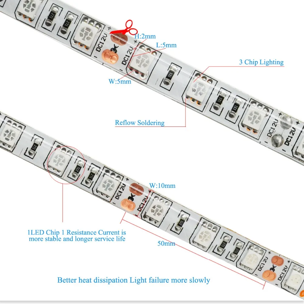 1. Супер яркий 5050 SMD светодиодный, высокая интенсивность и надежность.