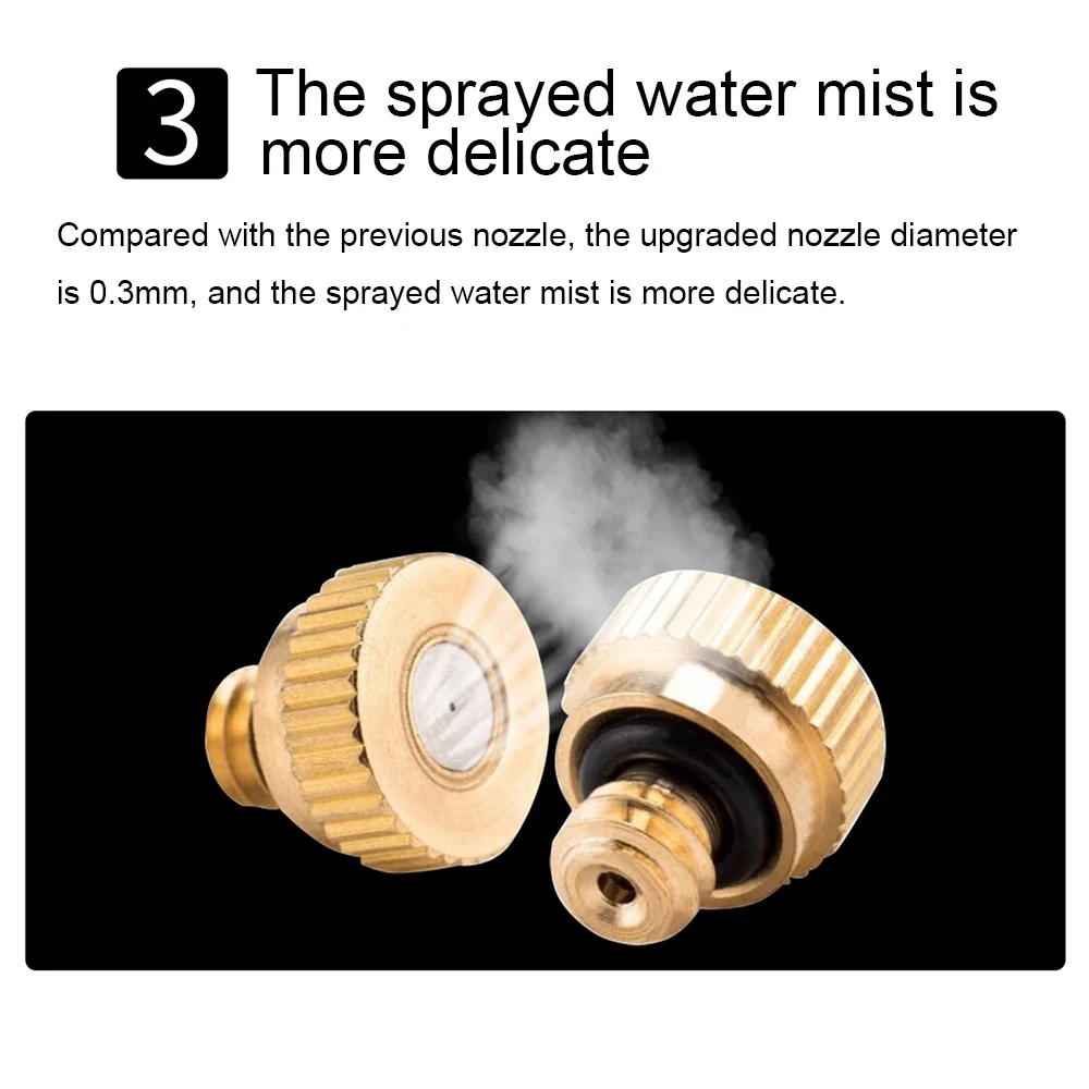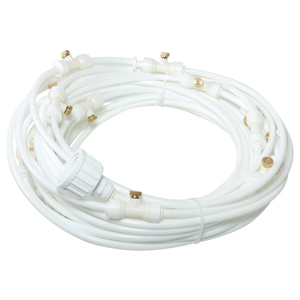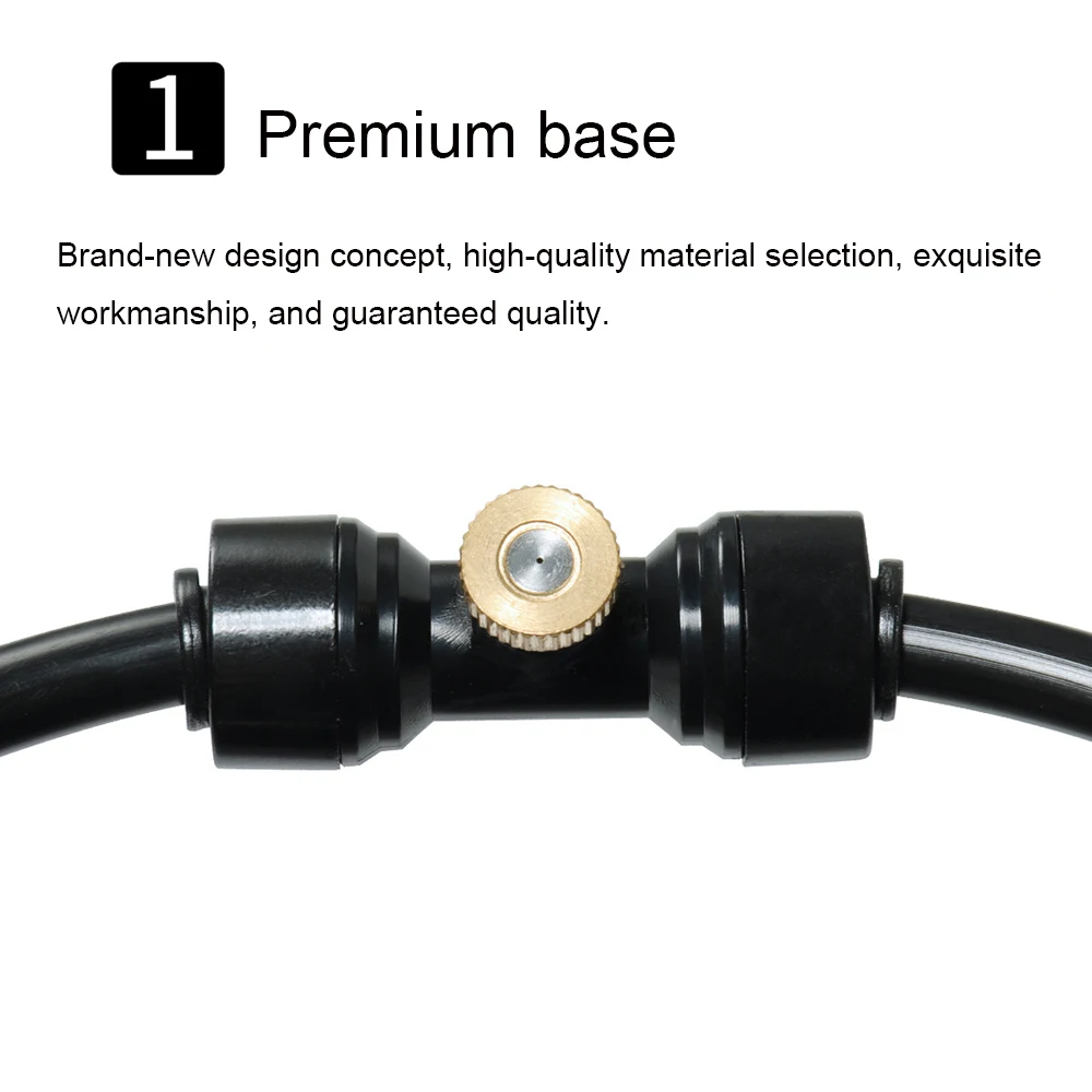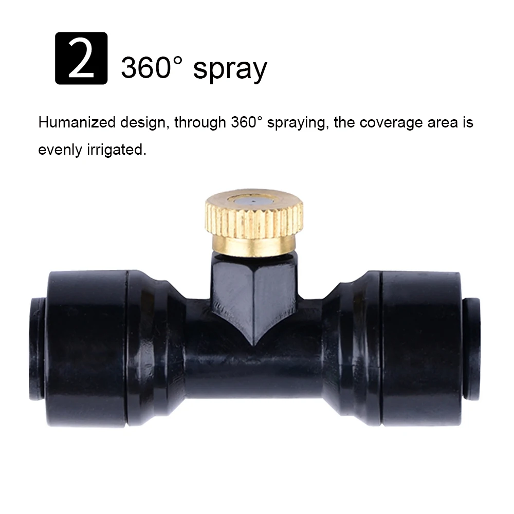 Length: 3/6/9/12/15/18M The fine forms a nozzle voltex in the guide vane, and a fine hollow mist is sprayed from the orifice. Can be widely used in plant humidification, cooling, disinfection, dust reduction, landscaping, salt spray test and other artificial fog, such nozzles is punched with the US precision drilling machine, the hole diameter is 0.4 mm, well-made, cost and Gas comparison with humidification, it saves 10 times or more. The series of nozzles do not need air assistance, the system is simple, the spray mist is fine, the atomization is sufficient, the energy saving and water saving are low, and the effect is good; the stainless steel spray film is processed by The advanced forging process, and the durability is strong. It is 2.5 times longer than the same type of nozzle. The nozzle can fully utilize the pressure of the tap water for atomization. The use of a high pressure water pump is less effective. Installation steps: 1. It is recommended to install the atomization system at a height of 2.5m-3m. 2. Connect the adapter to the faucet. 3. Turn on the faucet cleaning system for 1 minute to clean the system and remove impurities. 4. Screw the discharge nozzle onto the tee fitting except the one at the end. 5. Turn on the faucet cleaning system for 2 minutes to ensure the system is completely cleaned. 6. Close the water and install the latest nozzle onto the fitting and use the end plug. 7. The atomizing pipe is fixed by a cable tie saddle clip provided. 8. Turn on the faucet until the sprayer is working and enjoying the cooling atomization system.9. When the atomizing system is not in use for a long time, close the nozzle to keep it dry and clean