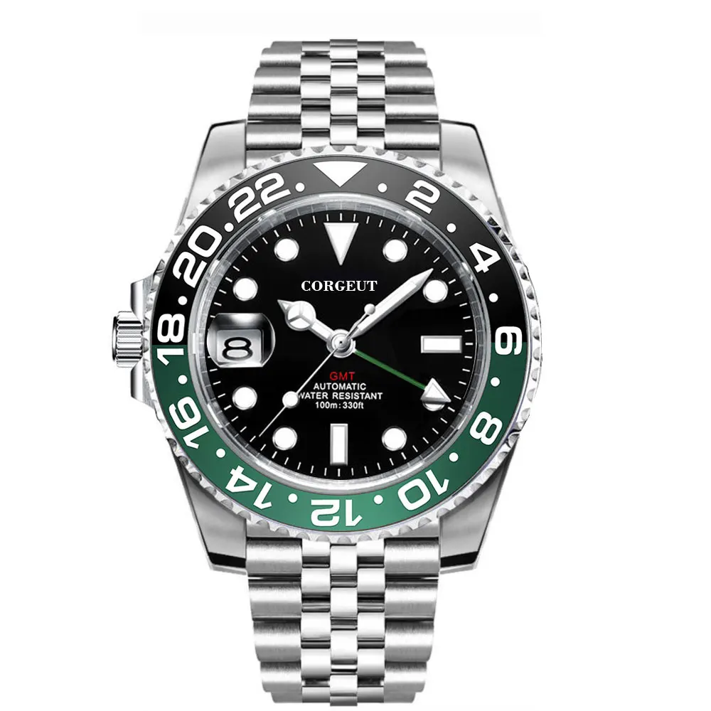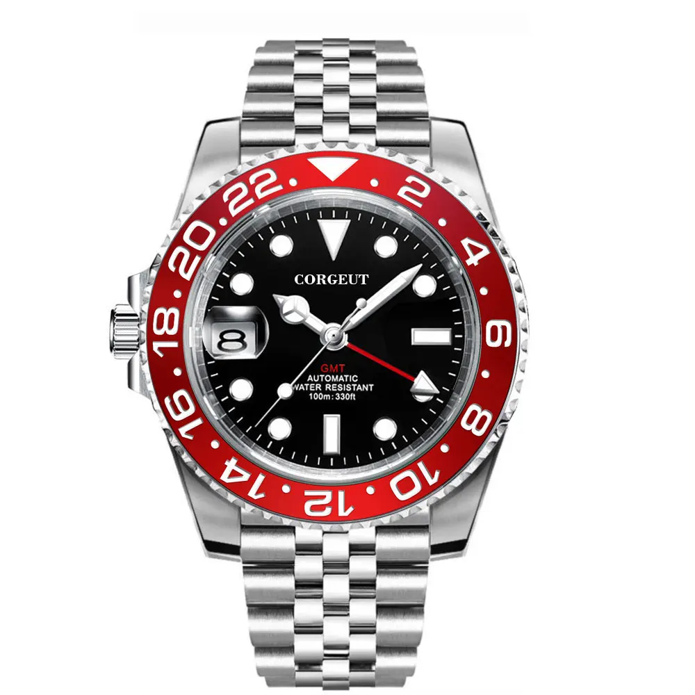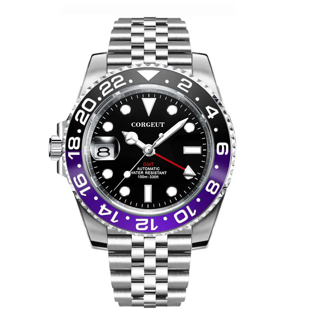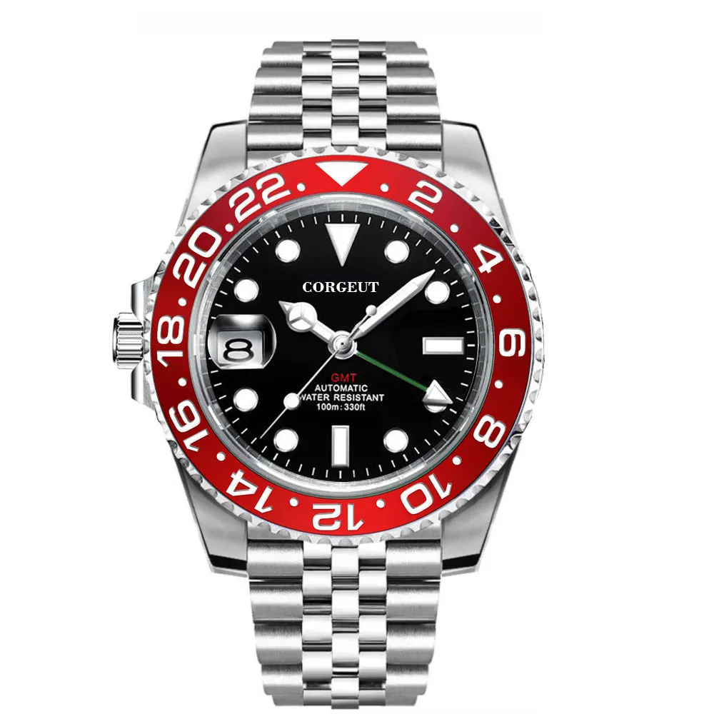 Особенности:Светящиеся makrs, светящиеся стрелки, 10 АТМ, однонаправленный керамический ободок, GMT