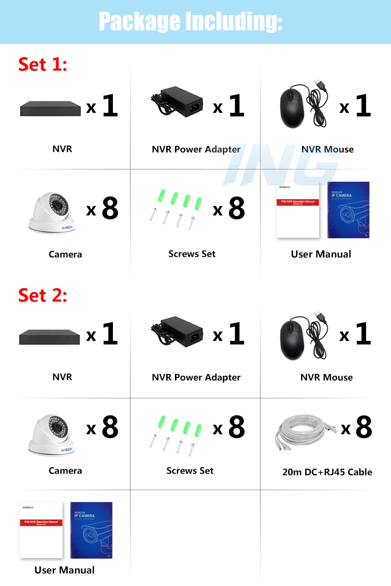 Система охранного видеонаблюдения POE NVR включает 8 шт. 5MP 1620 ip-камеры и 8CH 5MP POE NVR.