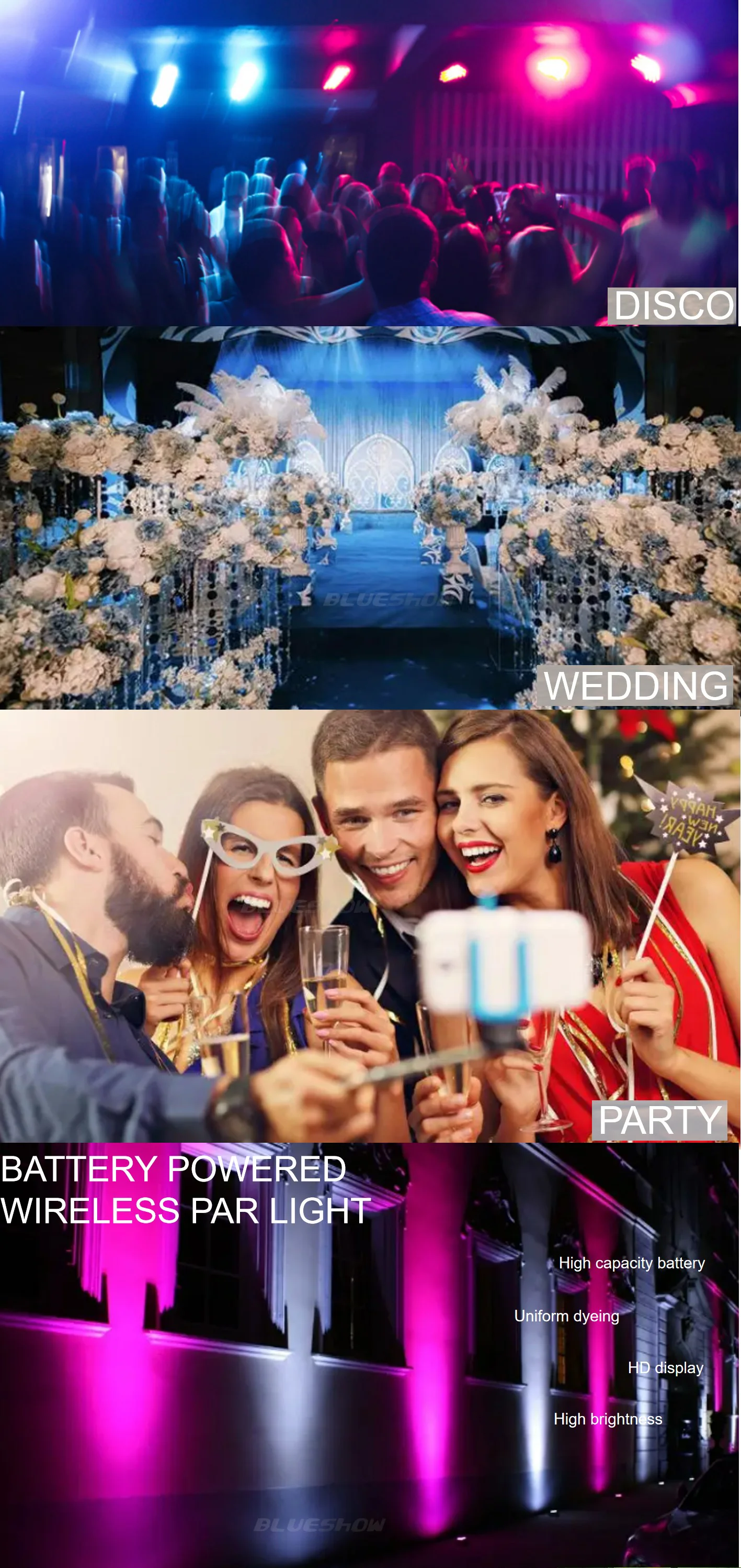 Питание от аккумулятора и беспроводное управление через приложение DMX и смартфона