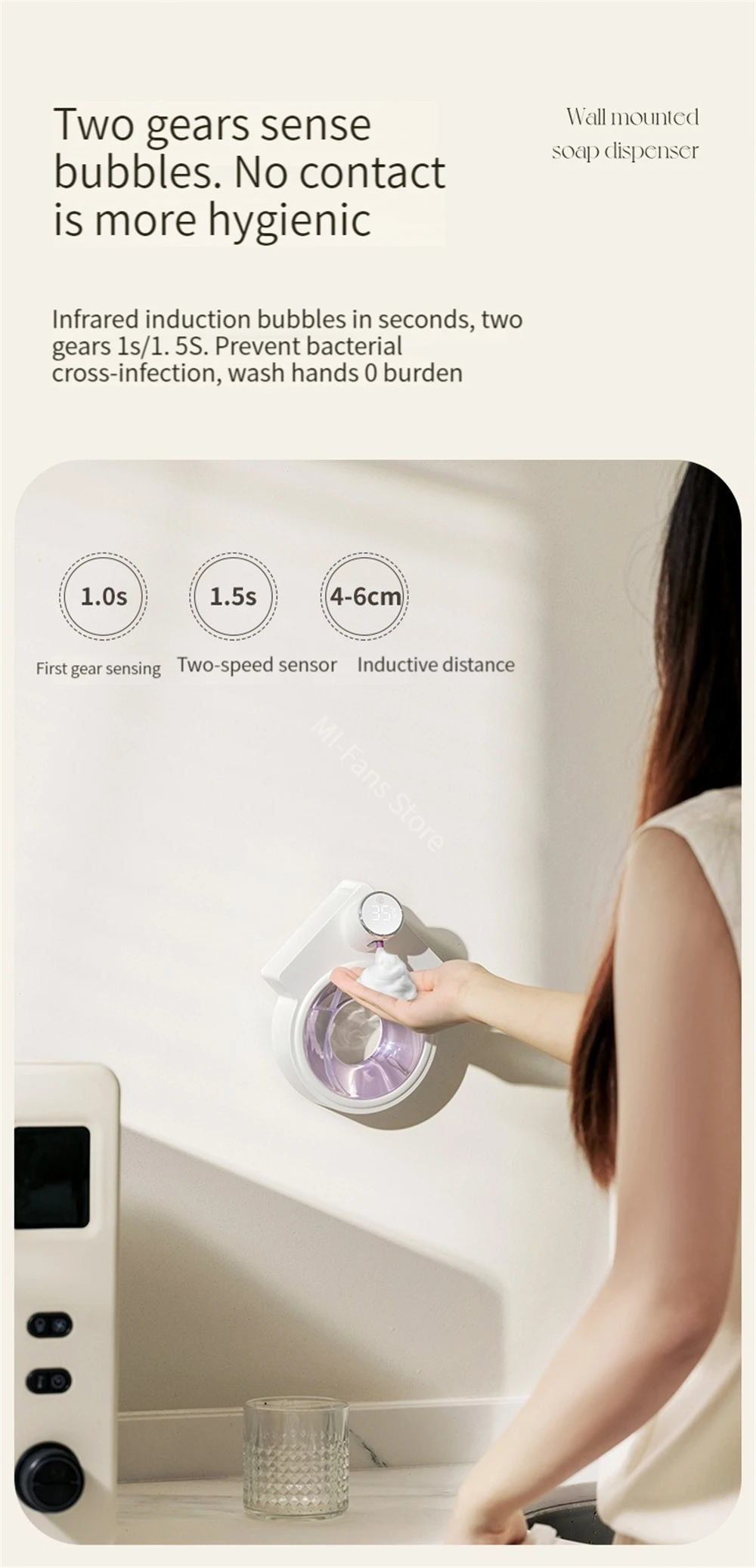 3. При обнаружении рука находится примерно в 5 см от чувствительного порта, чтобы избежать блокировки чувствительного порта при соединении с пеной