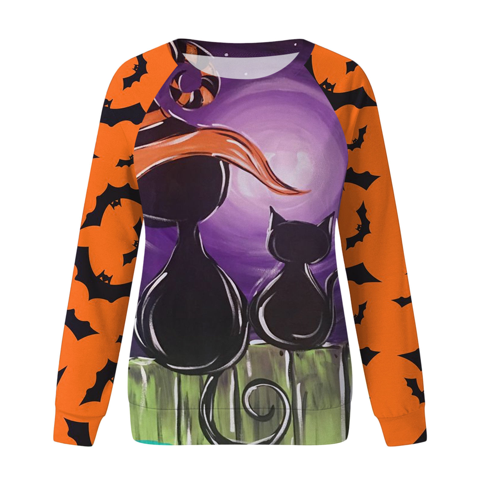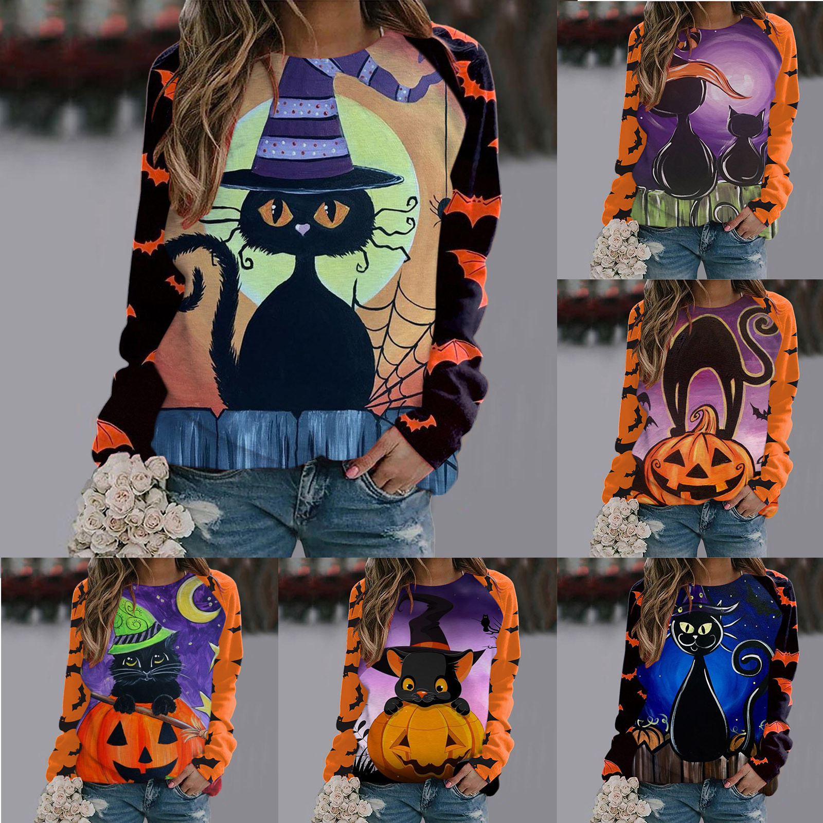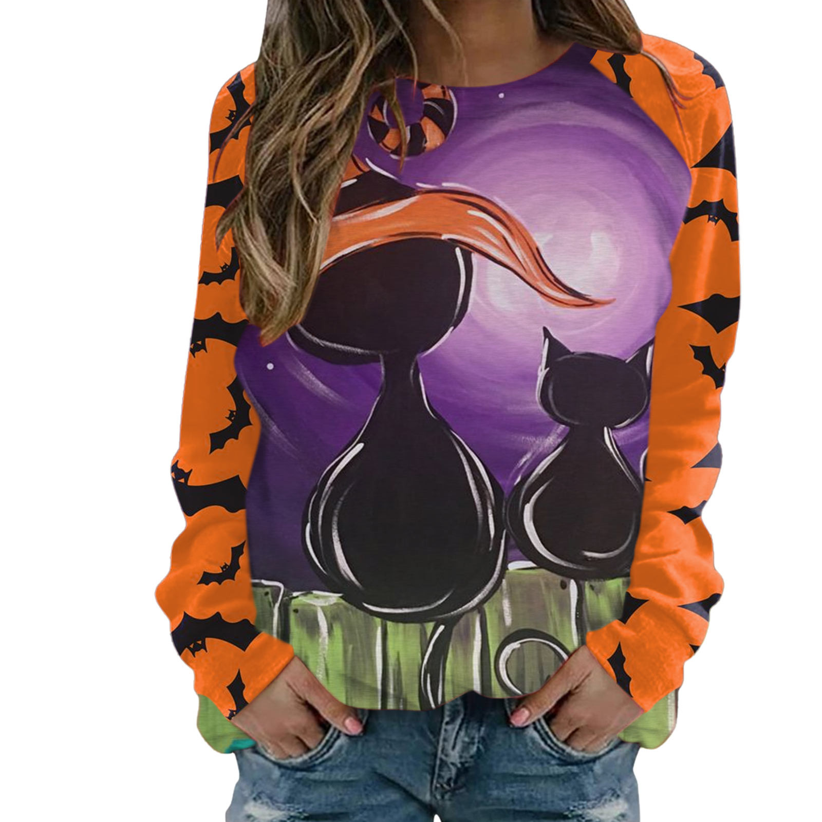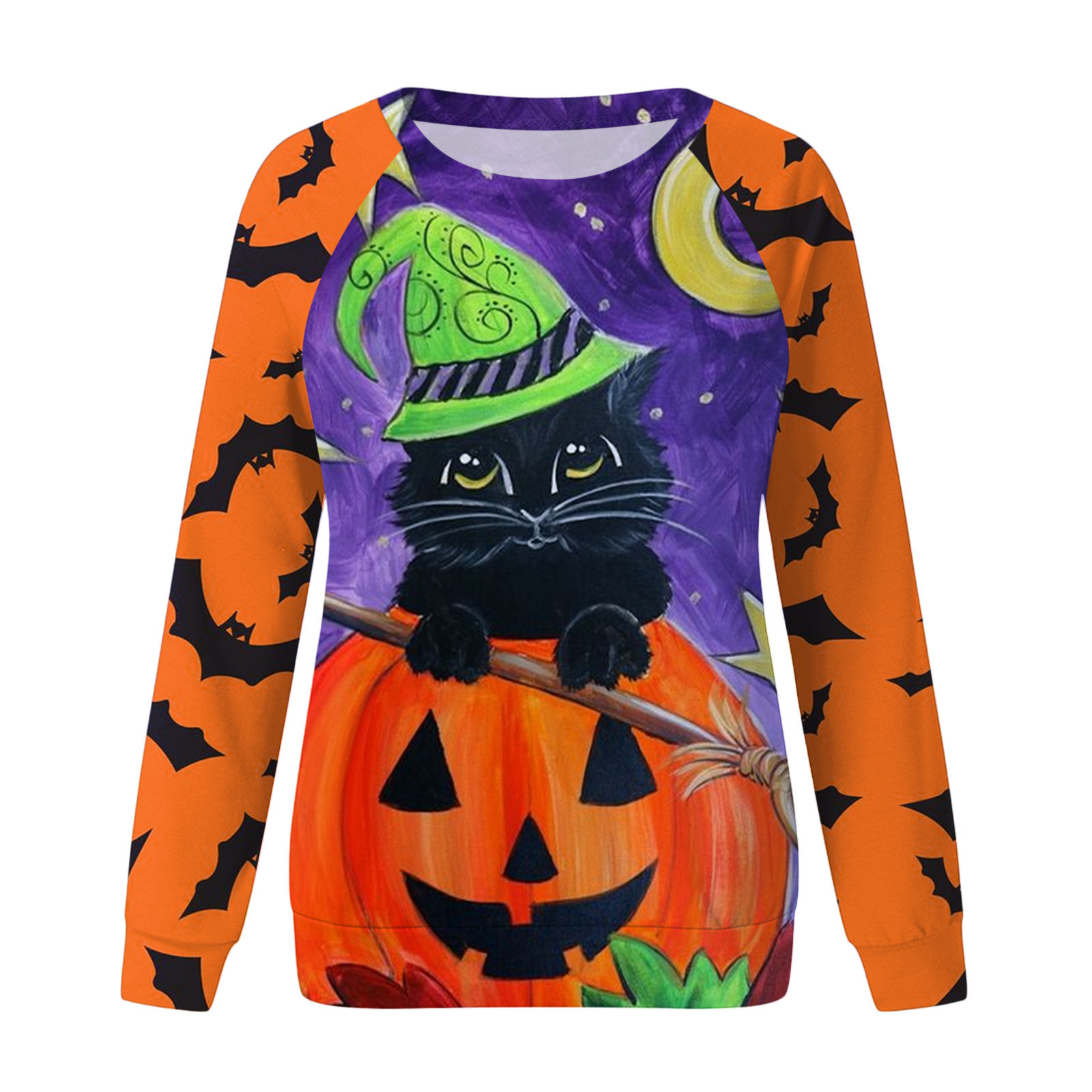Толстовка на Хеллоуин: Эта толстовка идеально подходит для сезона. Принт с алфавитом, рисунок с котом, длинные рукава, топ с вырезом лодочкой, повседневный стиль. Все эти особенности делают отличный осенний пуловер топом.