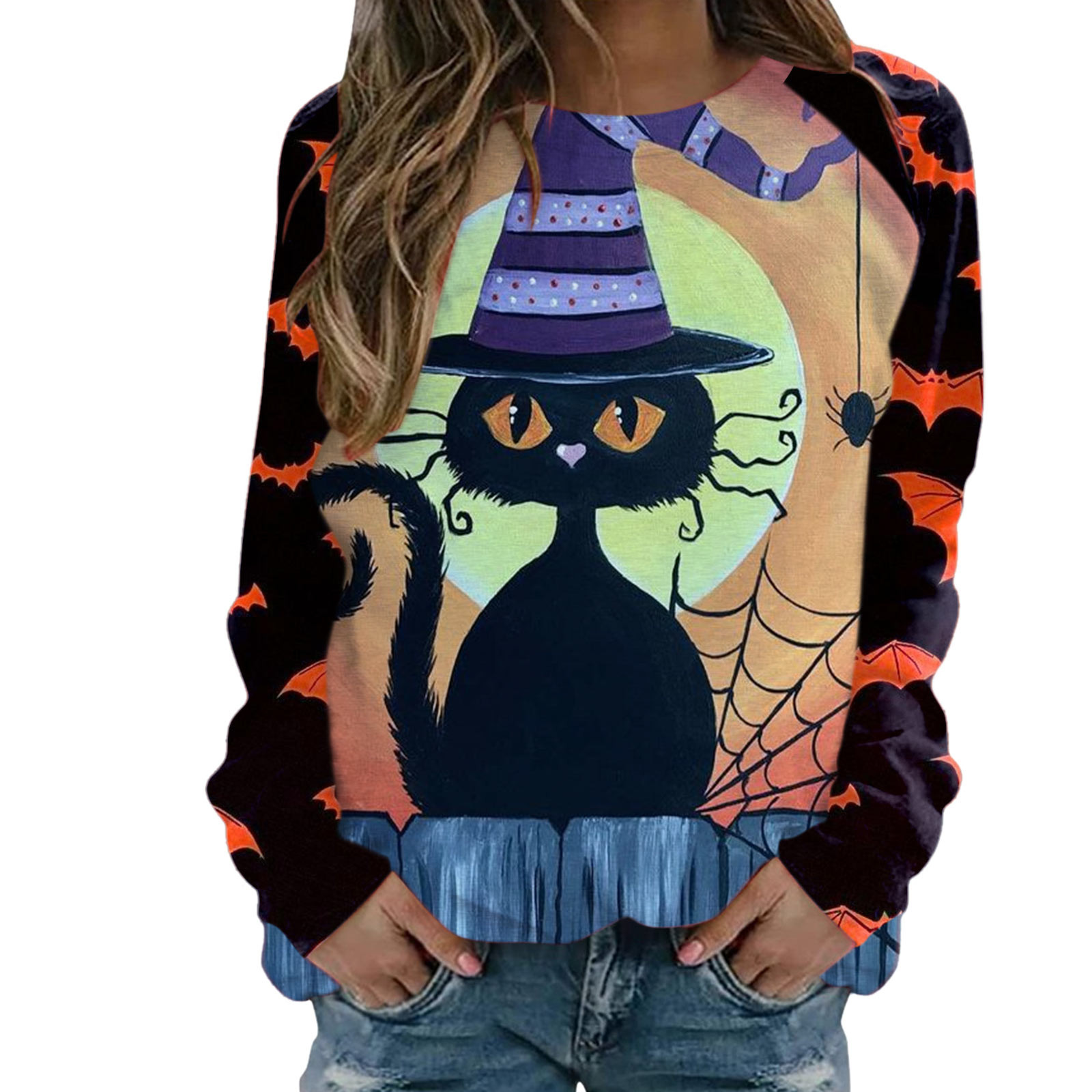 Упаковочный лист: 1 шт женский свитер Хэллоуин с длинным рукавом вырез лодочкой Повседневный пуловер Топ