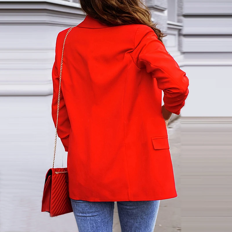 Элегантная женская куртка на пуговицах с отложным воротником, осенняя модная повседневная Офисная Женская куртка с длинным рукавом, винтажные куртки размера плюс