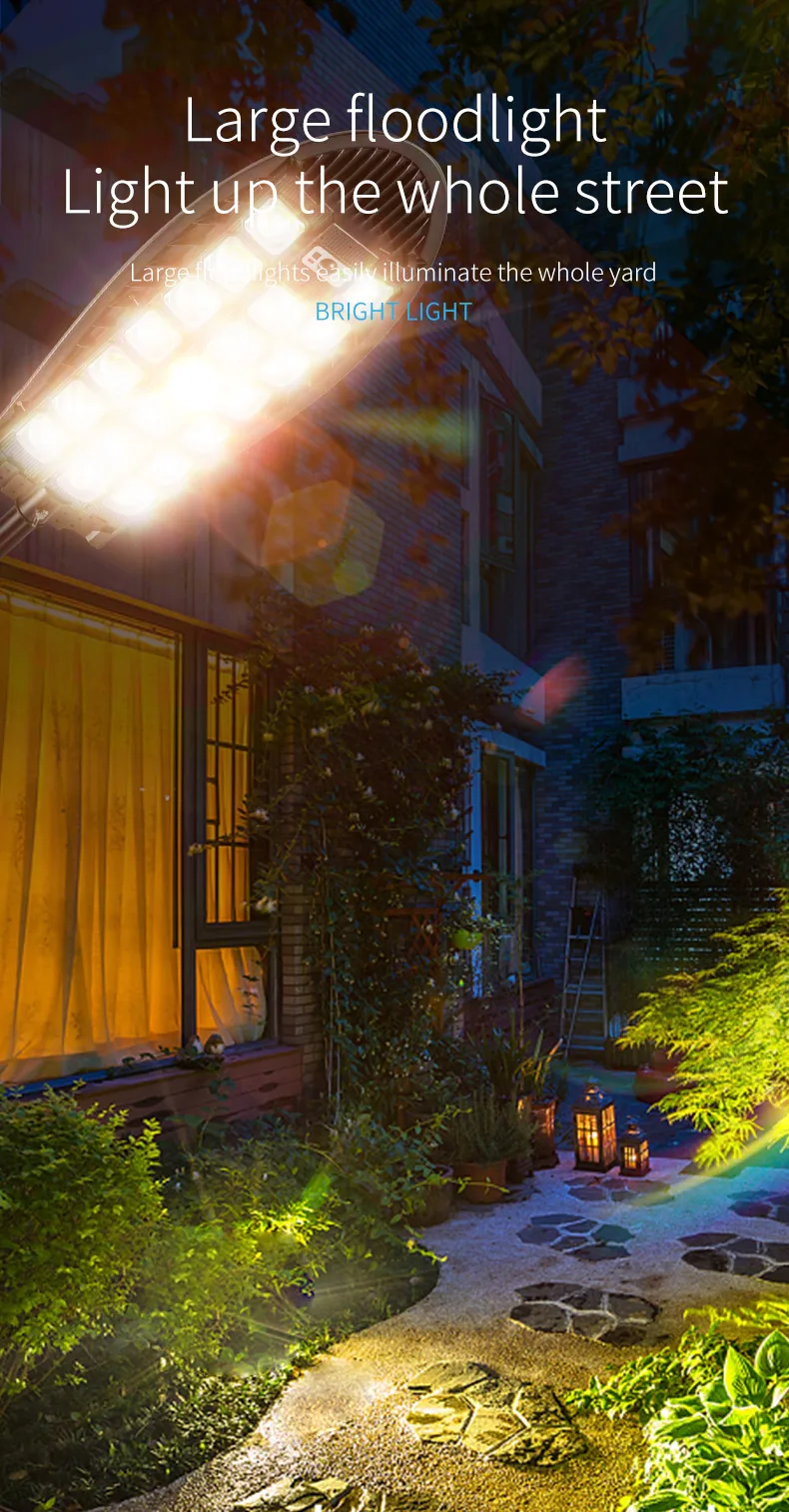 Солнечный уличный светильник: 400 Вт Солнечный уличный прожектор светильник на открытом воздухе, 20000 люменов высокого качества солнечный светильник может удовлетворить потребности больших мест, таких как светильник для больших мест для парковки, стадиона, сад, тропинка. IP65 Водонепроницаемость и устойчивость к атмосферным воздействиям. Лучший выбор для счетов за электричество.