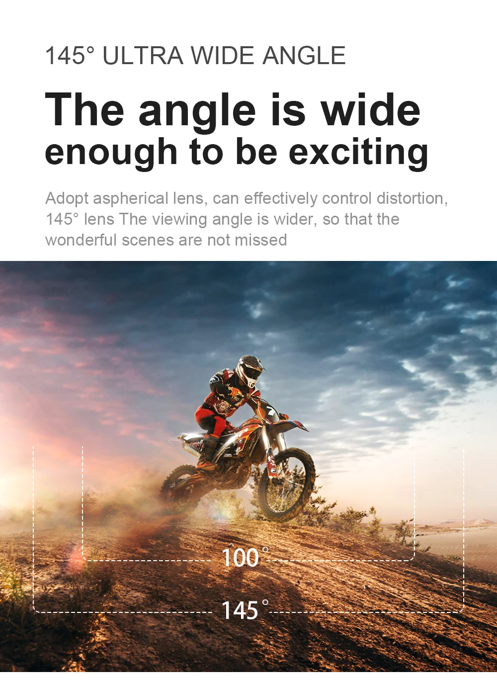 Принимает асферические линзы, может эффективно контролировать искажения, объектив 145 ° угол обзора шире, так что прекрасные сцены не пропущены.