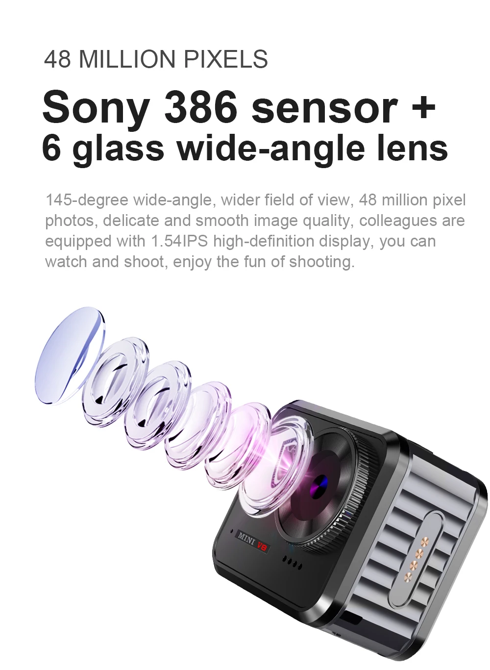145 градусов широкоугольный, более широкое поле зрения, 48 миллионов пикселей фотографий, деликатное и гладкое качество изображения, коллеги оснащены 1.54 IPS дисплей высокой четкости. Вы можете смотреть и снимать. Наслаждайтесь веселой съемкой.