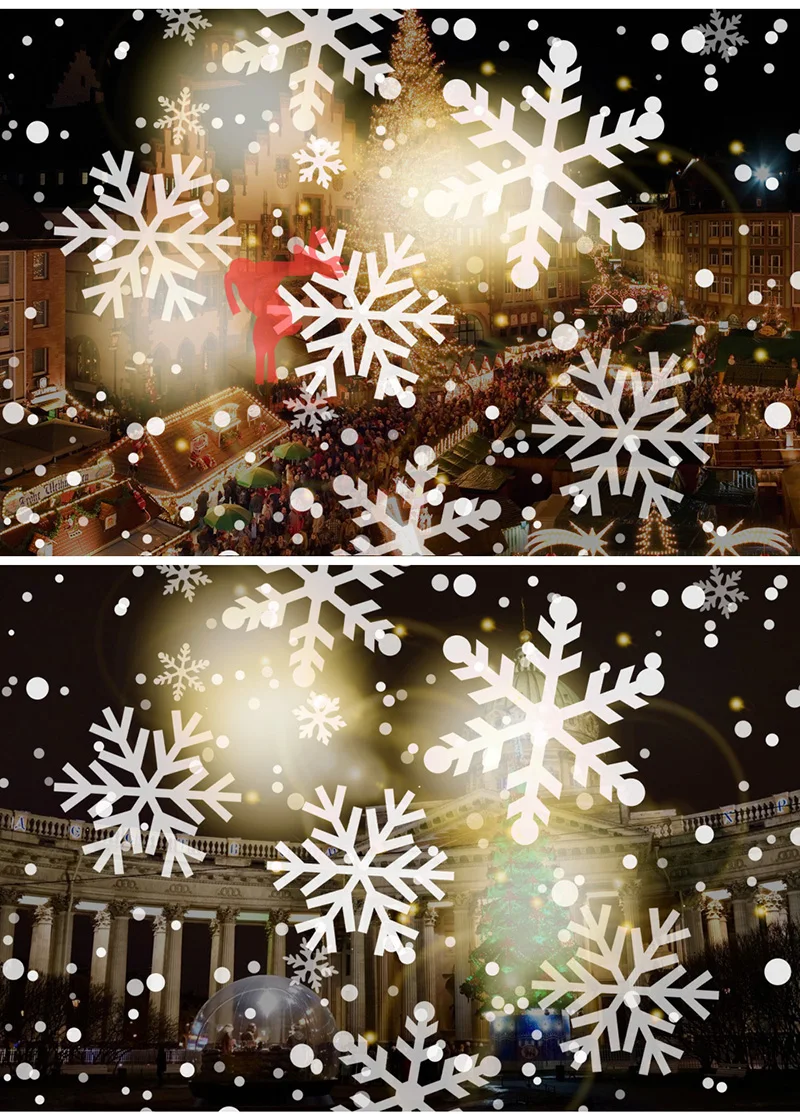 -Для эффекта проекции, доступны статические и динамические, динамическое движение показывает падающие модели снега.