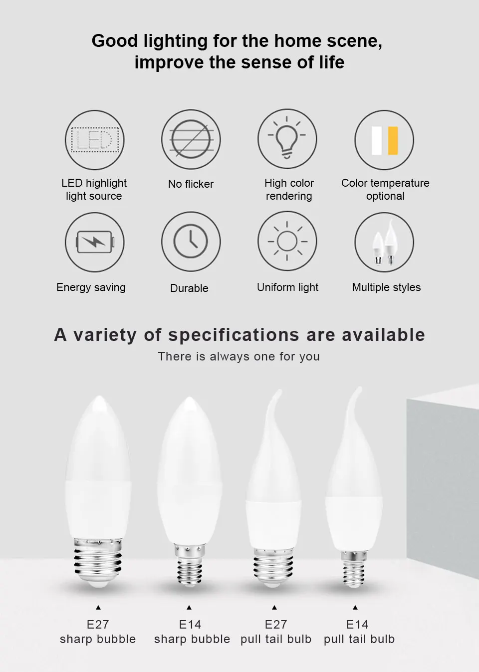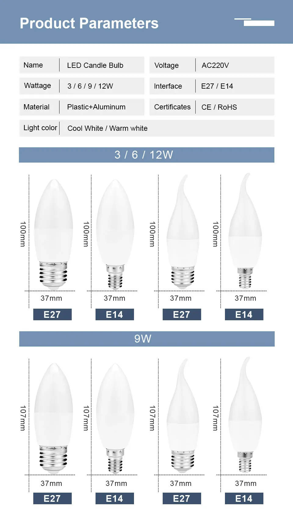Base Type: E27/E14 LED Light Bulb