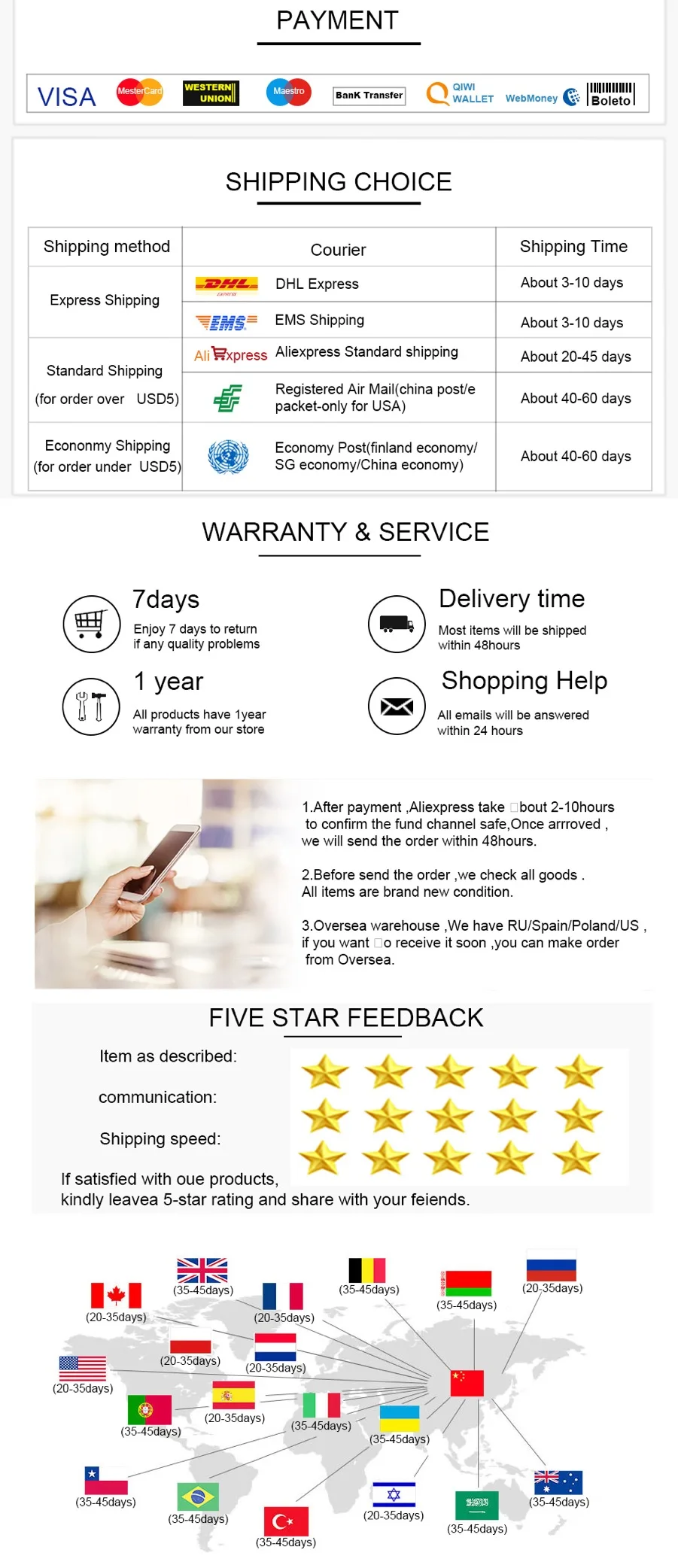 Иногда Международная доставка сильно зависит от курьерской компании и местных таможни/пошлин. Если вы не получили товар вовремя, пожалуйста, немедленно свяжитесь с нами для получения дополнительной помощи. Спасибо за понимание.