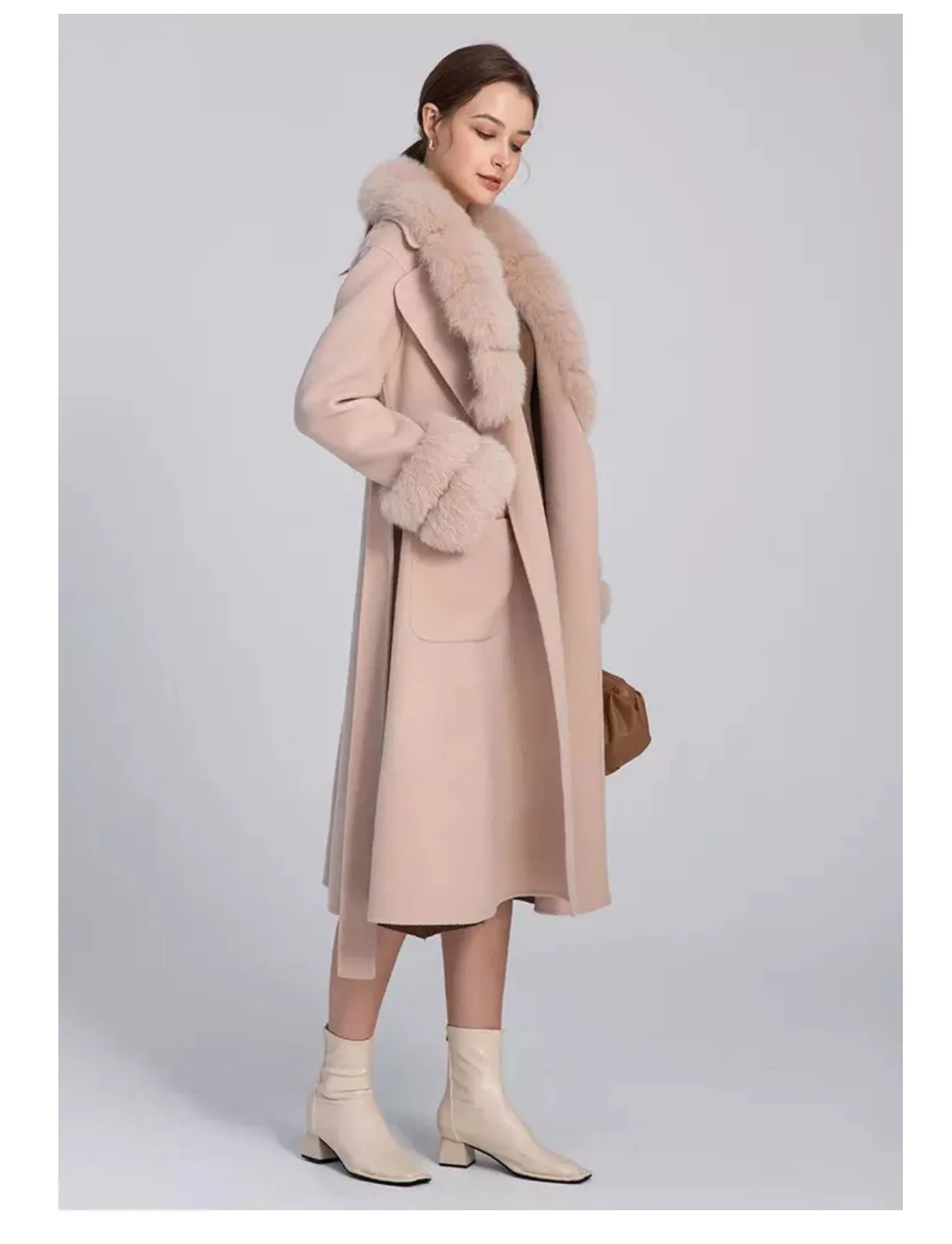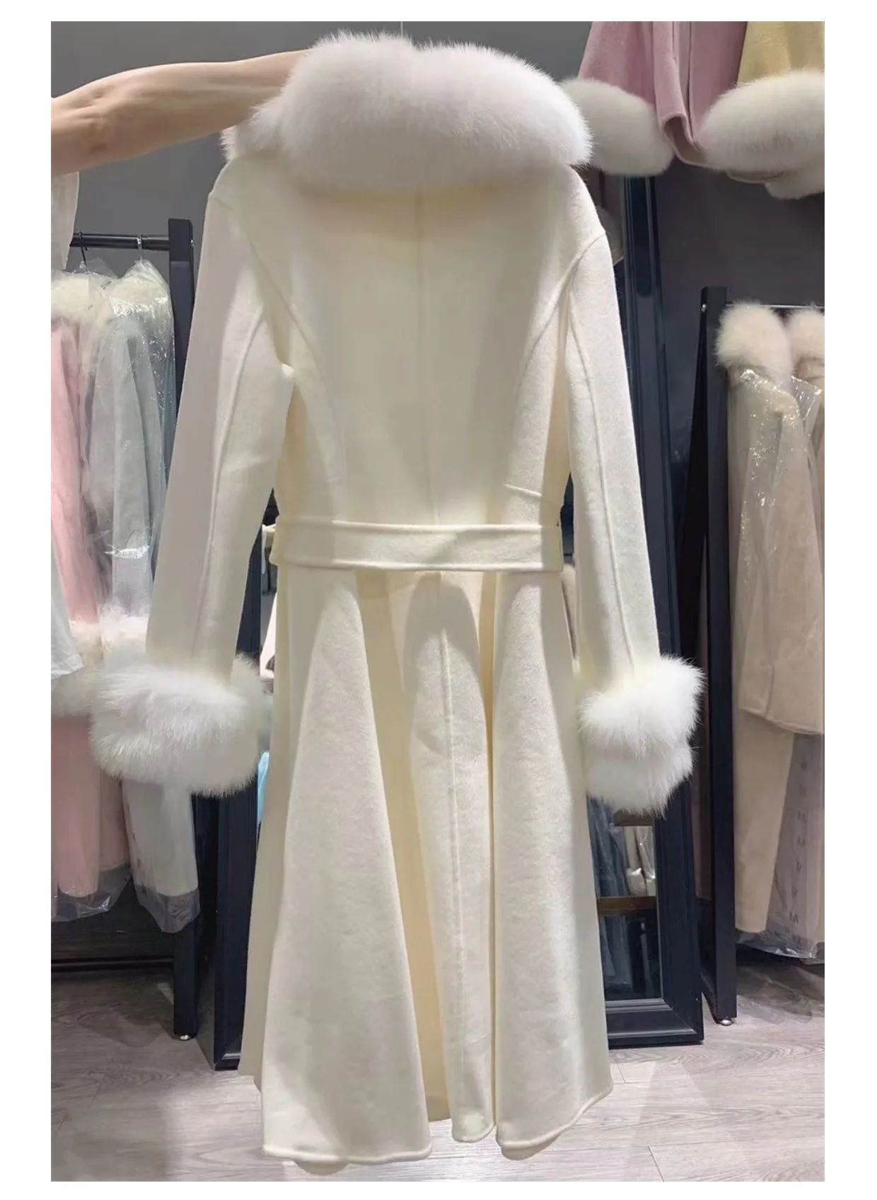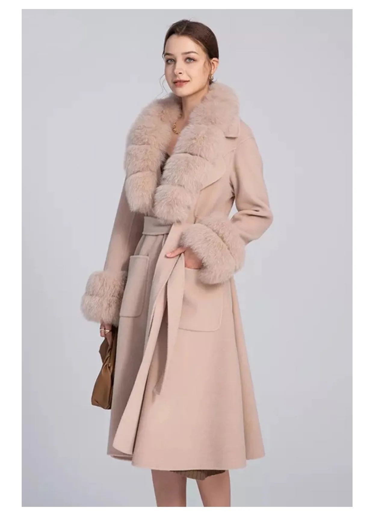 100% шерсть + 100% натуральный мех лисы воротник и манжеты