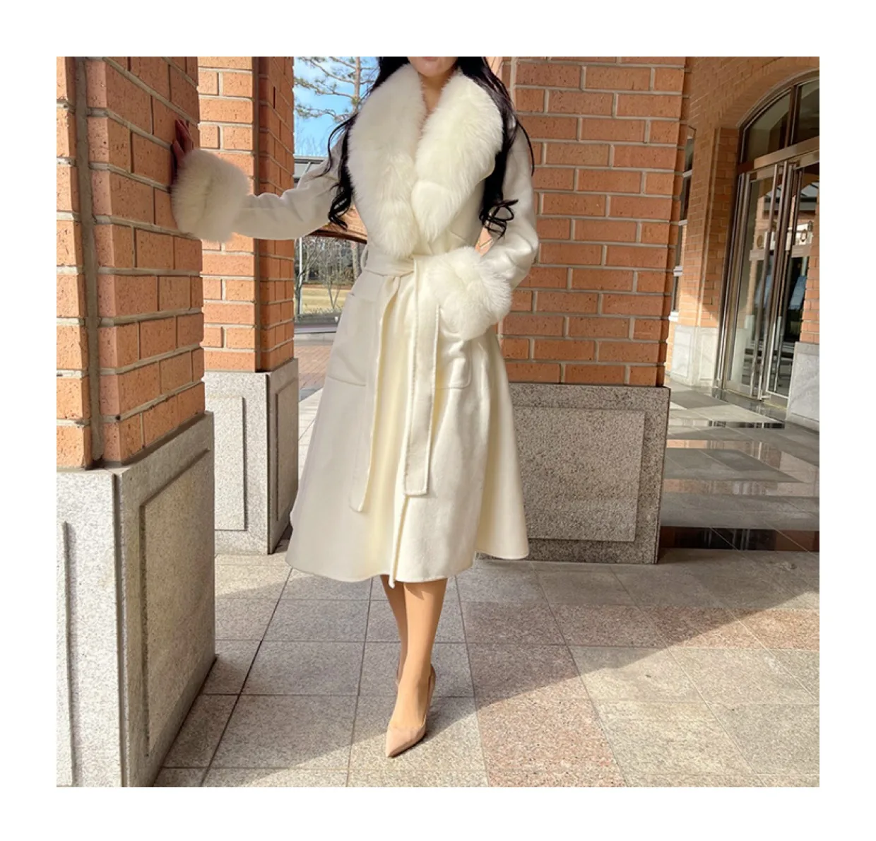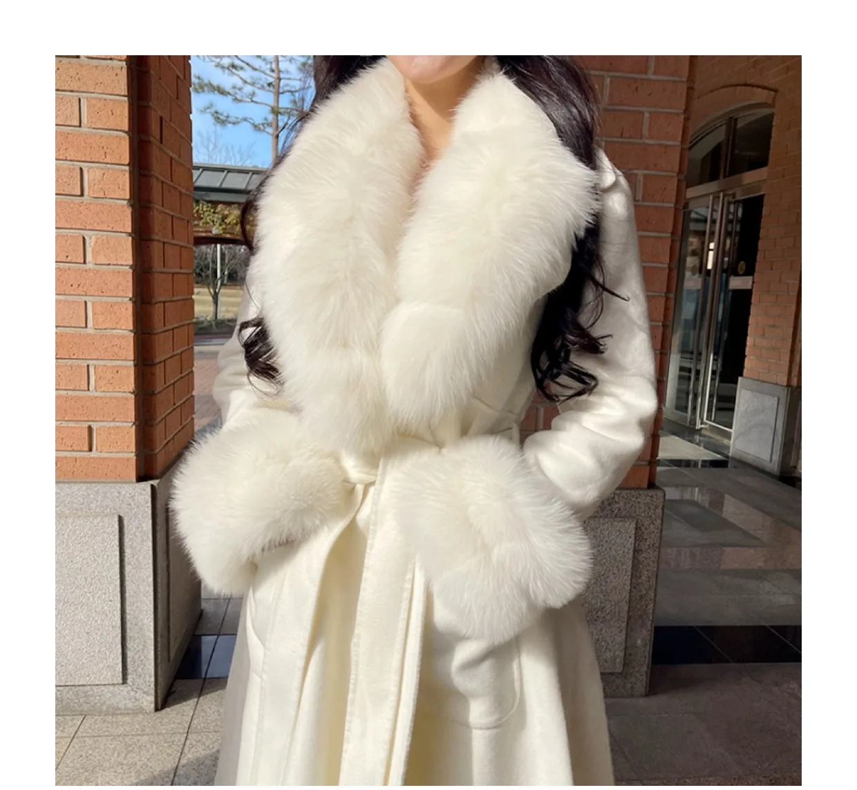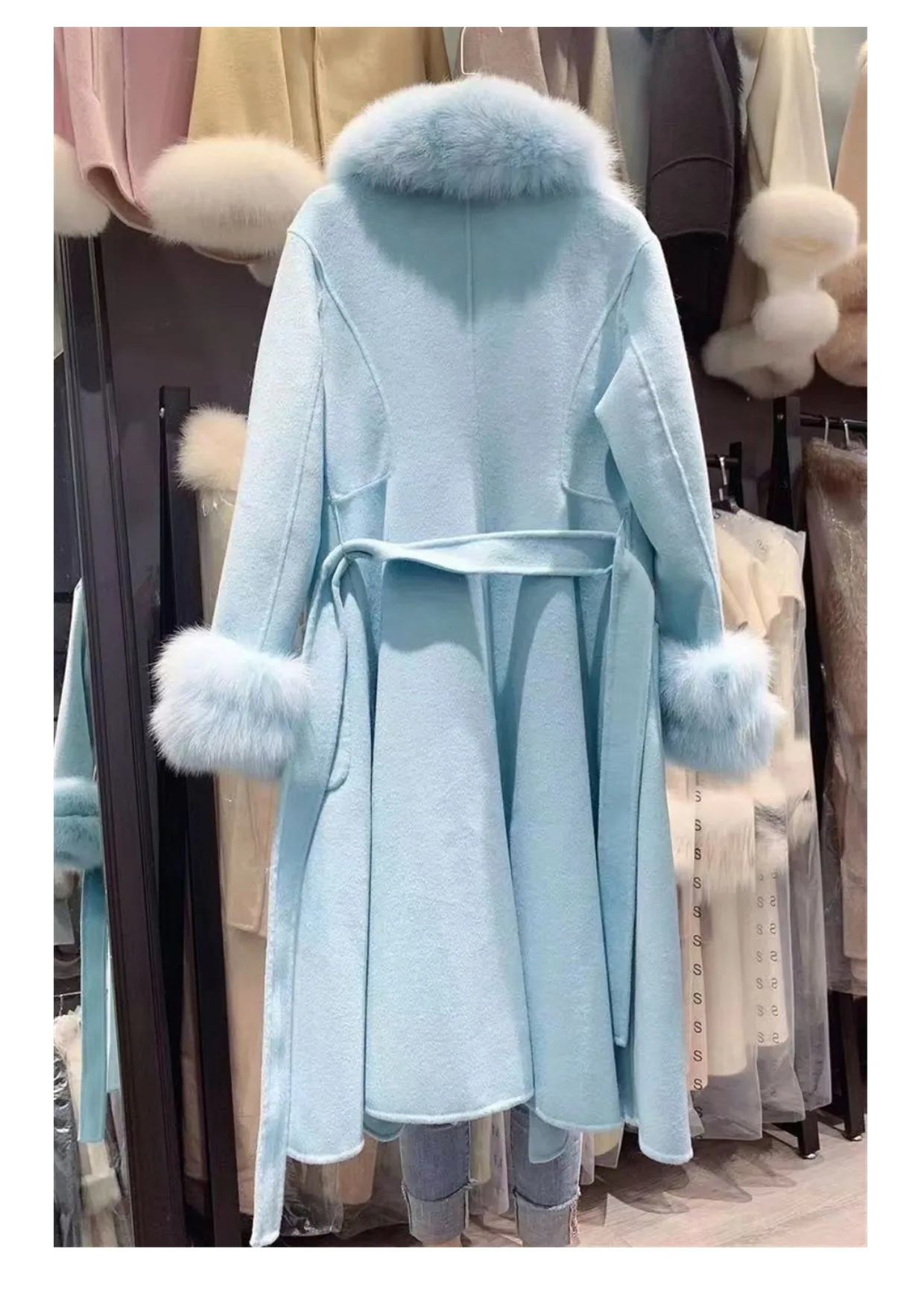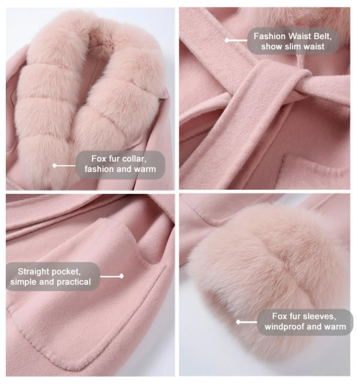 100% шерсть + 100% натуральный мех лисы воротник и манжеты